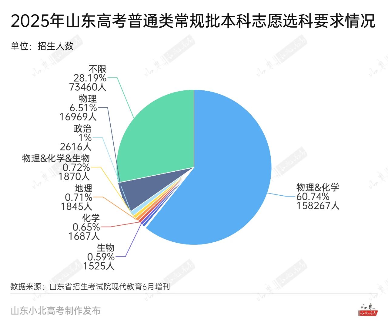 以2025年山东省高考普通类常规批本科招生数据为例: