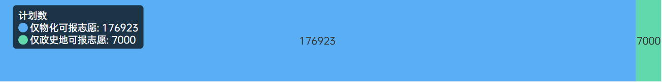 3.专属计划稀缺:将所有仅限或要求包含政、史、地的专业招生计划相加(不包括“不限”),总数仅约7000余人,占总体比例很低。与此形成鲜明对比的是,选考了物理和化学的考生,其独有的可选招生计划高达近18万个。