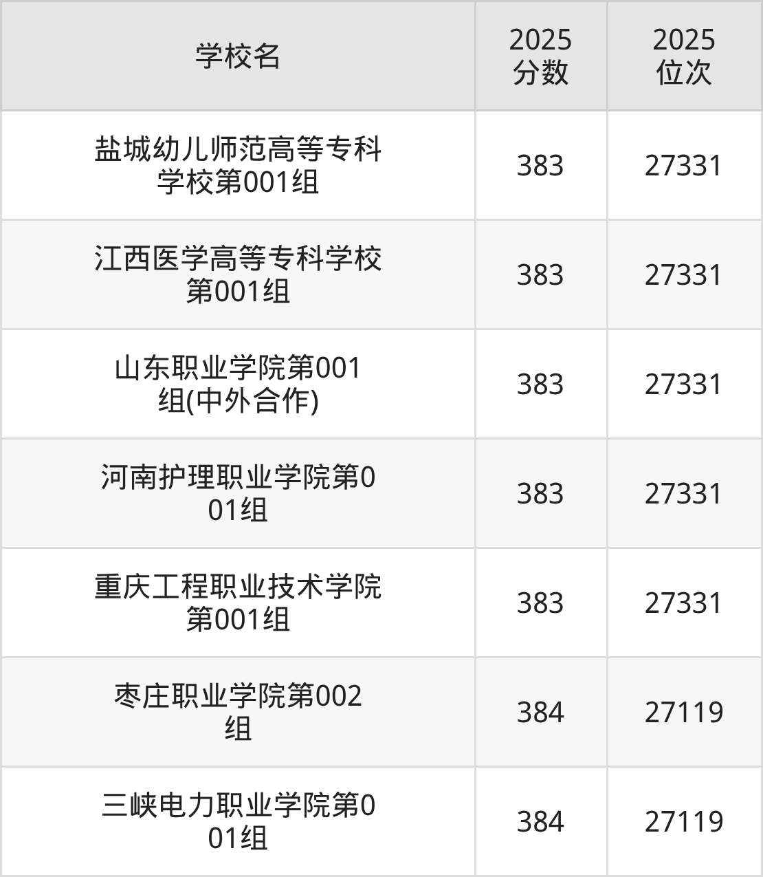 包含:盐城幼儿师范高等专科学校、江西医学高等专科学校、山东职业学院、河南护理职业学院、重庆工程职业技术学院、枣庄职业学院、三峡电力职业学院。