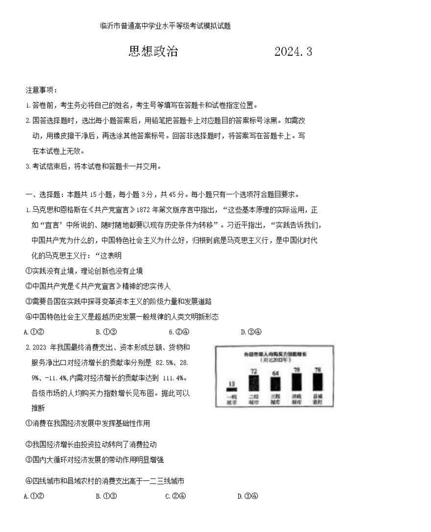 临沂一模政治考试时间:3月4日上午10:00-11:30