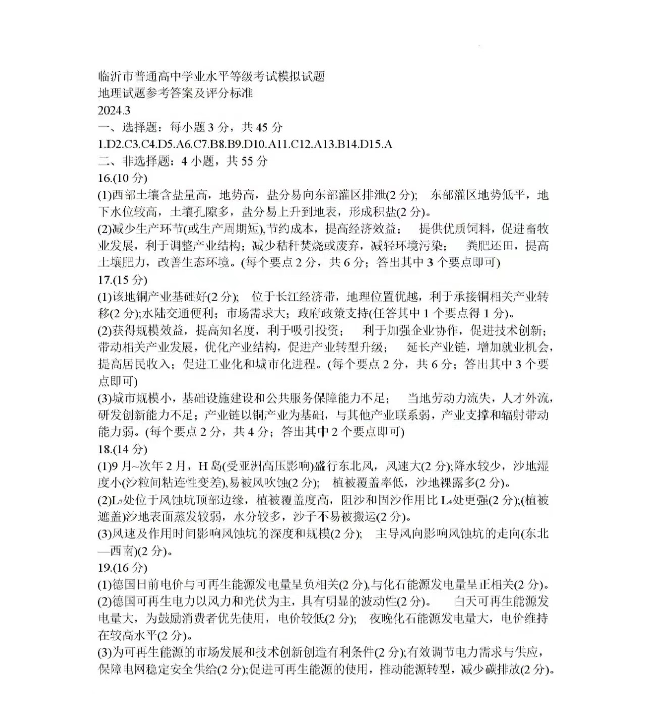 临沂一模地理考试时间:3月6日上午10:00-11:30