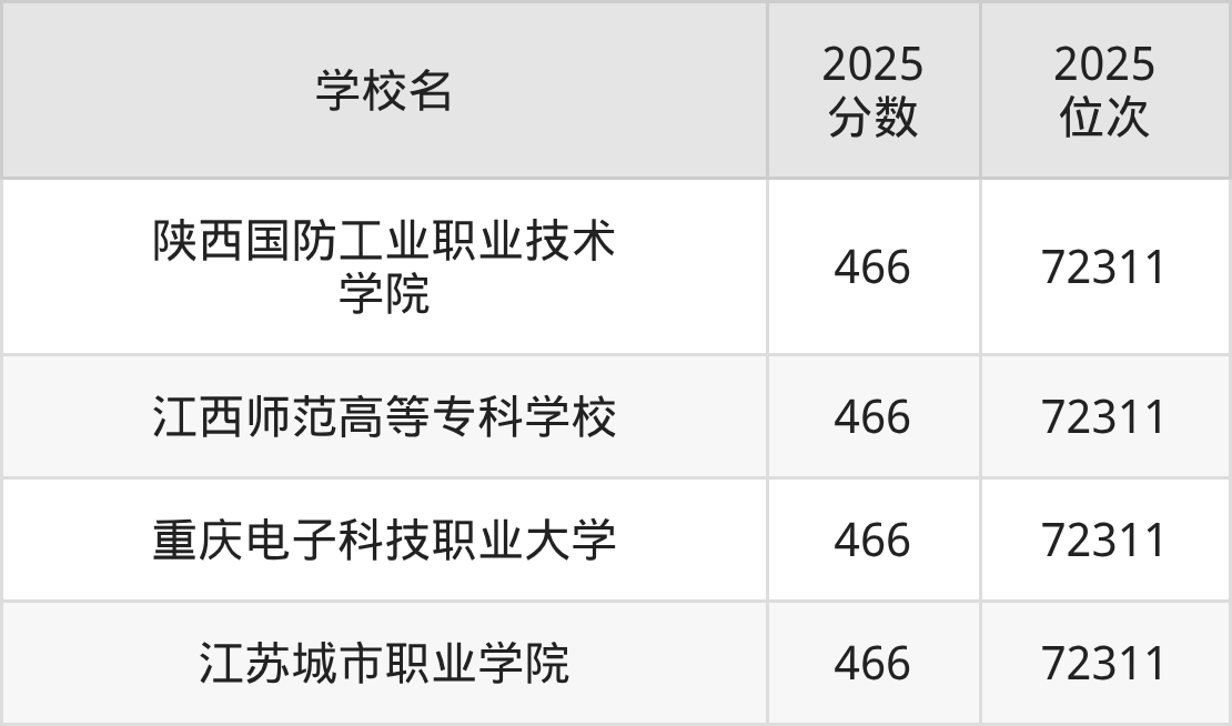 | 学校名 | 2025 分数 | 2025 位次 |