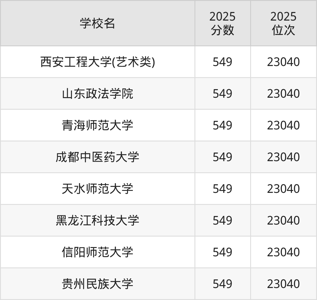 包含:西安工程大学(艺术类)、山东政法学院、青海师范大学、成都中医药大学、天水师范大学、黑龙江科技大学、信阳师范大学、贵州民族大学。