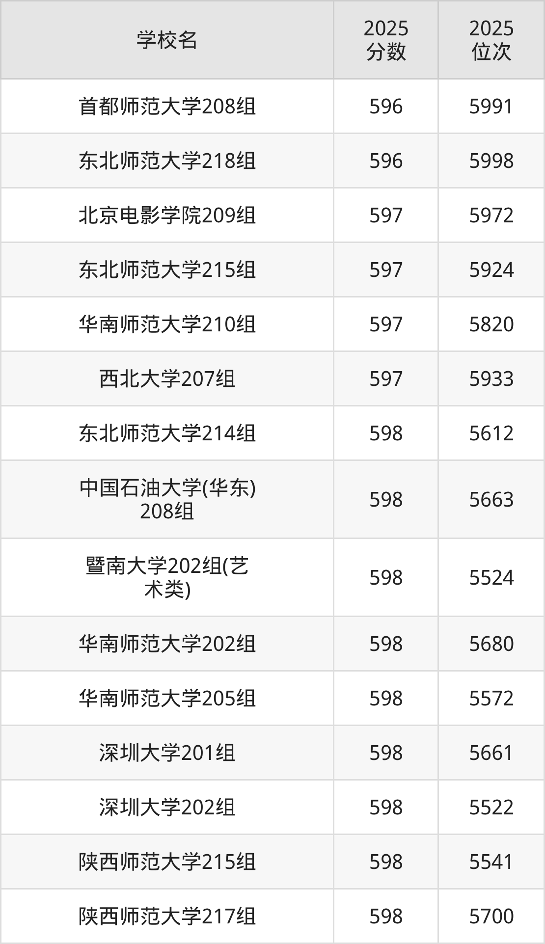 包含:首都师范大学、东北师范大学、北京电影学院、华南师范大学、西北大学、中国石油大学(华东)、暨南大学、深圳大学、陕西师范大学。
