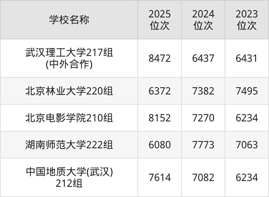 | 学校名称 | 2025 位次 | 2024 位次 | 2023 位次 |