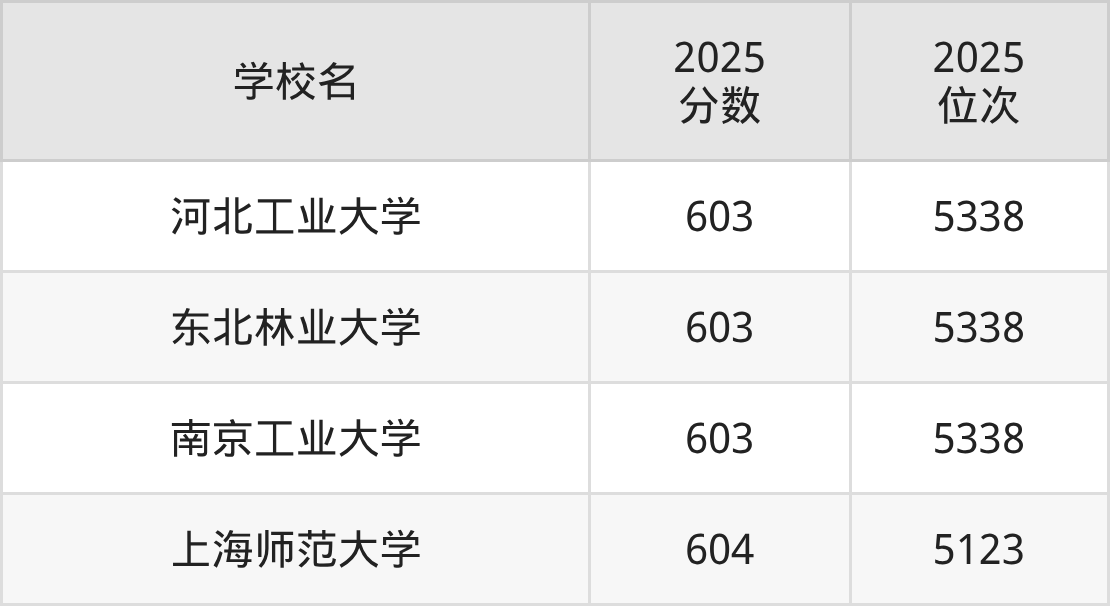 包含:河北工业大学、东北林业大学、南京工业大学、上海师范大学。