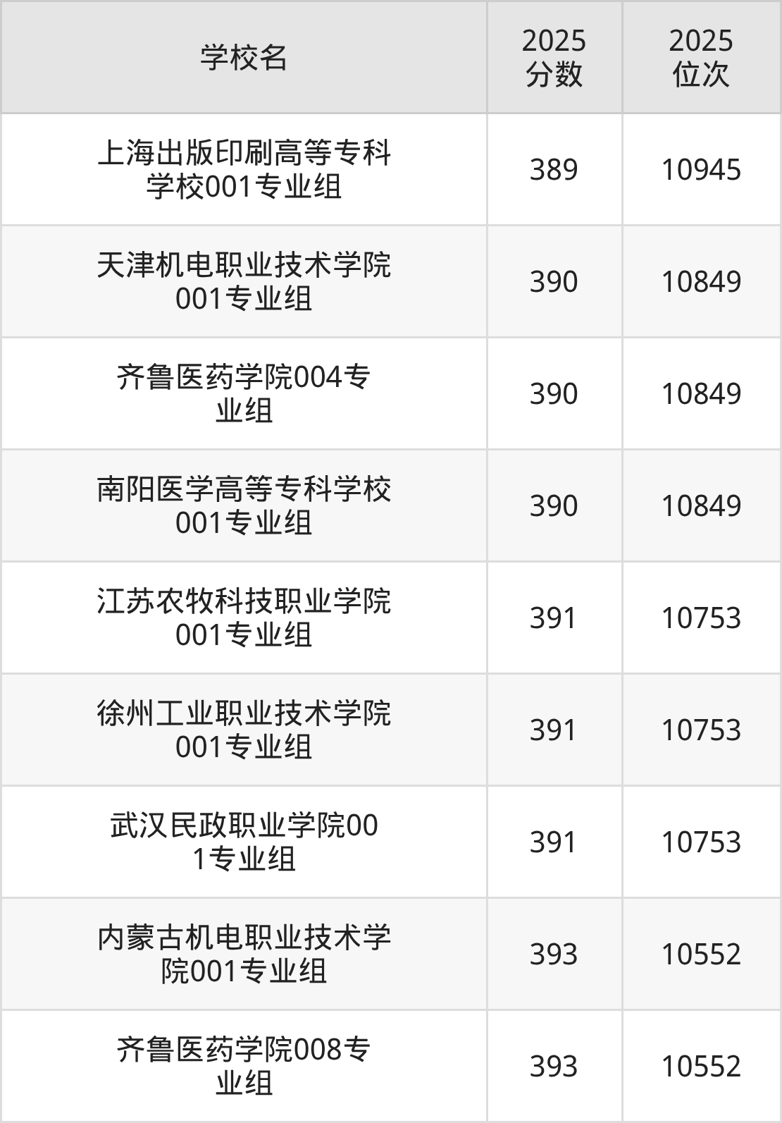 包含:上海出版印刷高等专科学校、天津机电职业技术学院、齐鲁医药学院、南阳医学高等专科学校、江苏农牧科技职业学院、徐州工业职业技术学院、武汉民政职业学院、内蒙古机电职业技术学院。