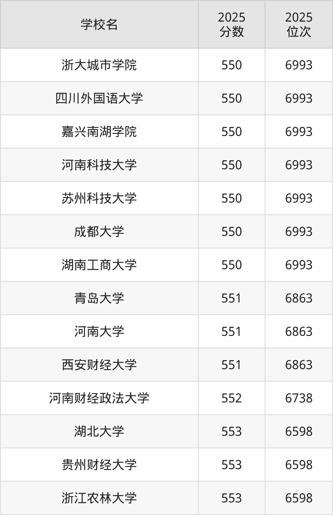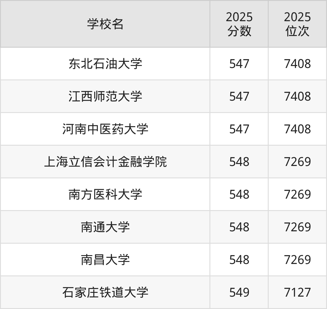 | 学校名 | 2025 分数 | 2025 位次 |