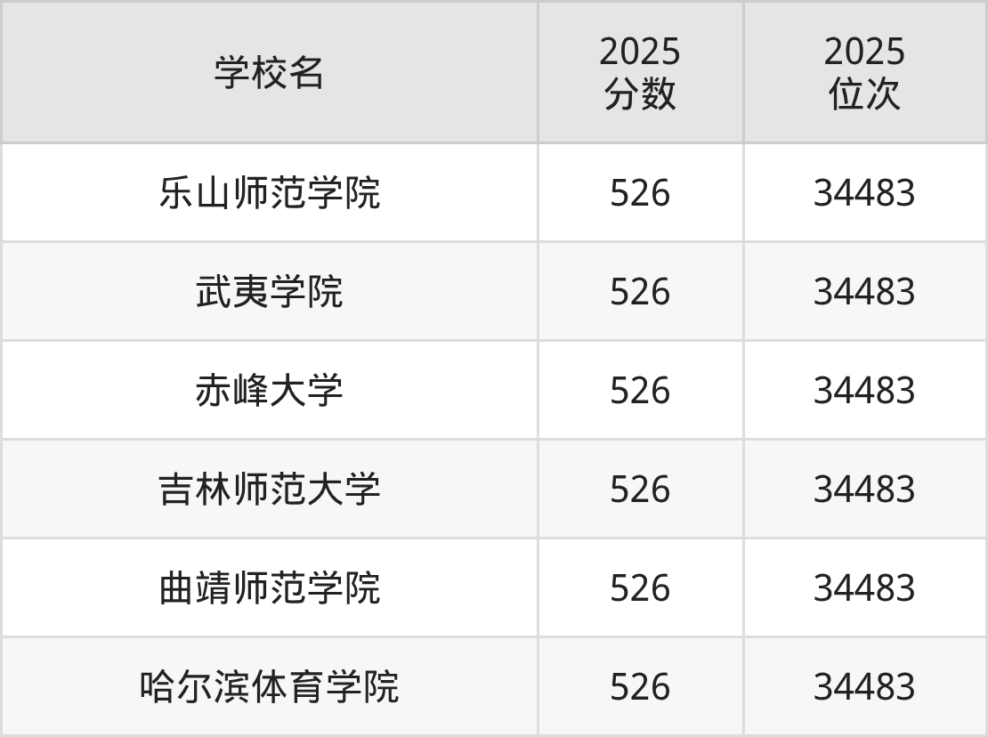 赤峰大学:2025年的最低分位次是34483名,2024年是36889名,2023年是37188名。招生专业包含:小学教育、特殊教育、历史学。