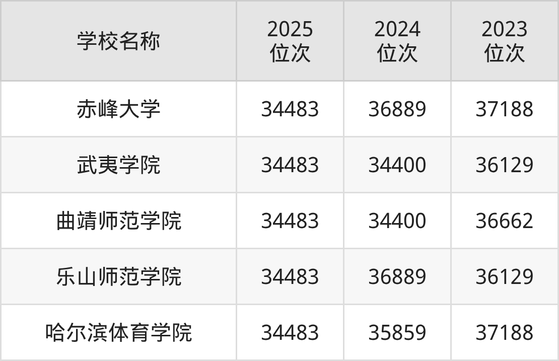| 学校名称 | 2025 位次 | 2024 位次 | 2023 位次 |