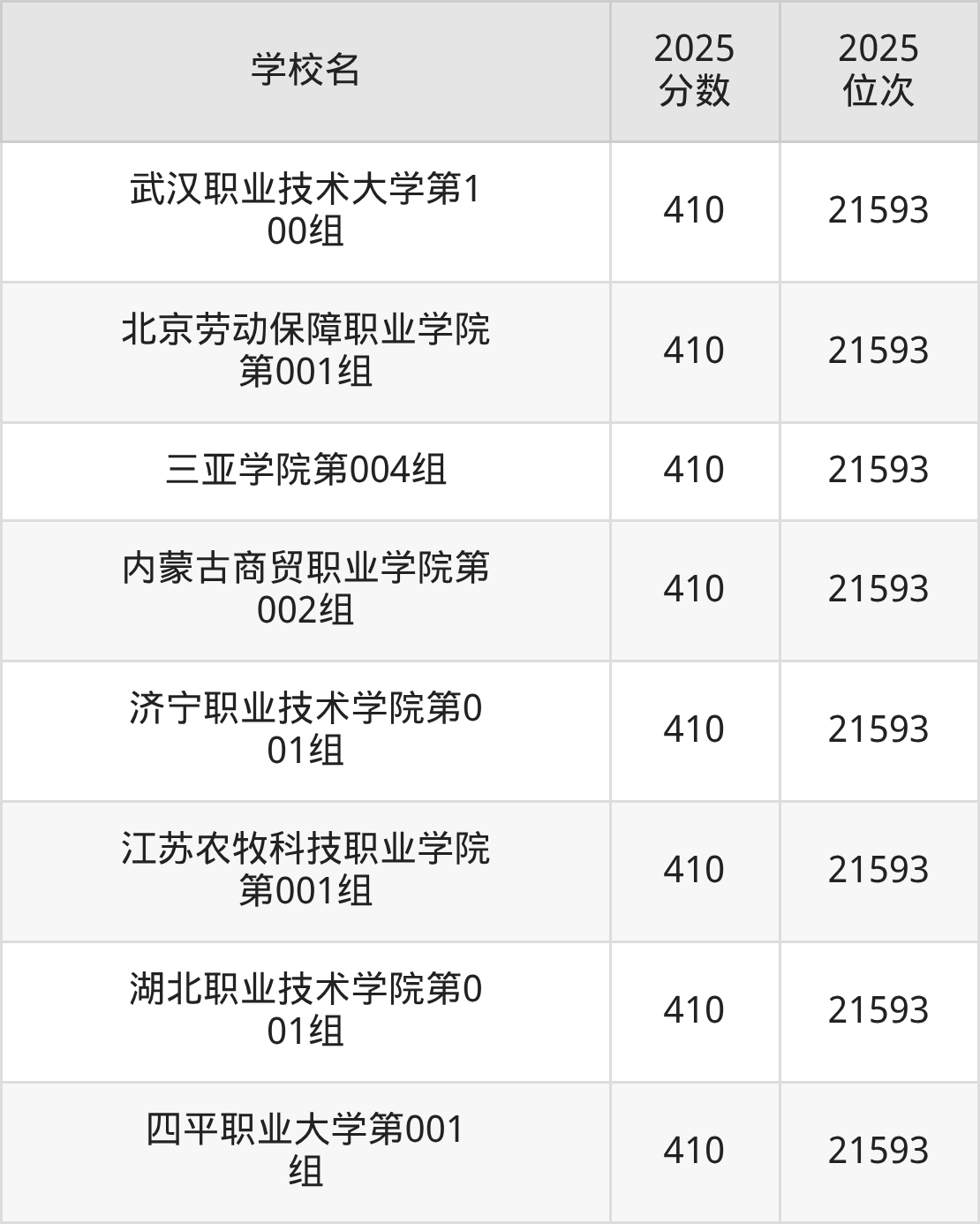 | 学校名 | 2025 分数 | 2025 位次 |