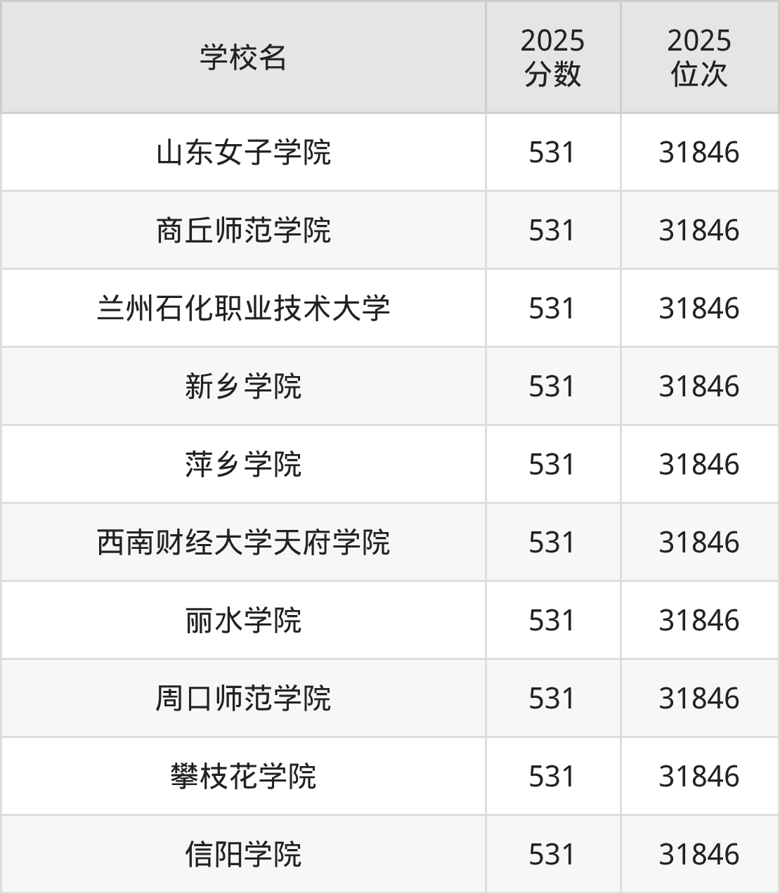 包含:山东女子学院、商丘师范学院、兰州石化职业技术大学、新乡学院、萍乡学院、西南财经大学天府学院、丽水学院、周口师范学院、攀枝花学院、信阳学院。