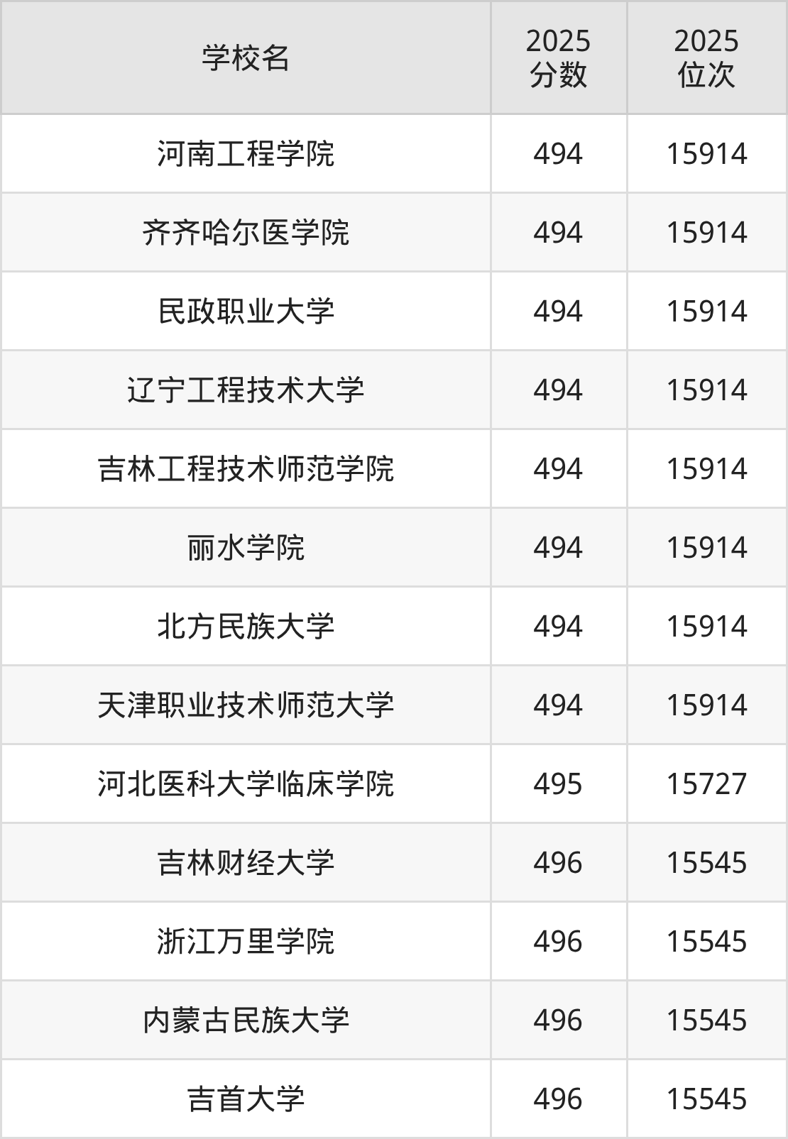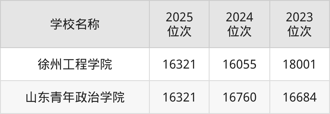 | 学校名称 | 2025 位次 | 2024 位次 | 2023 位次 |