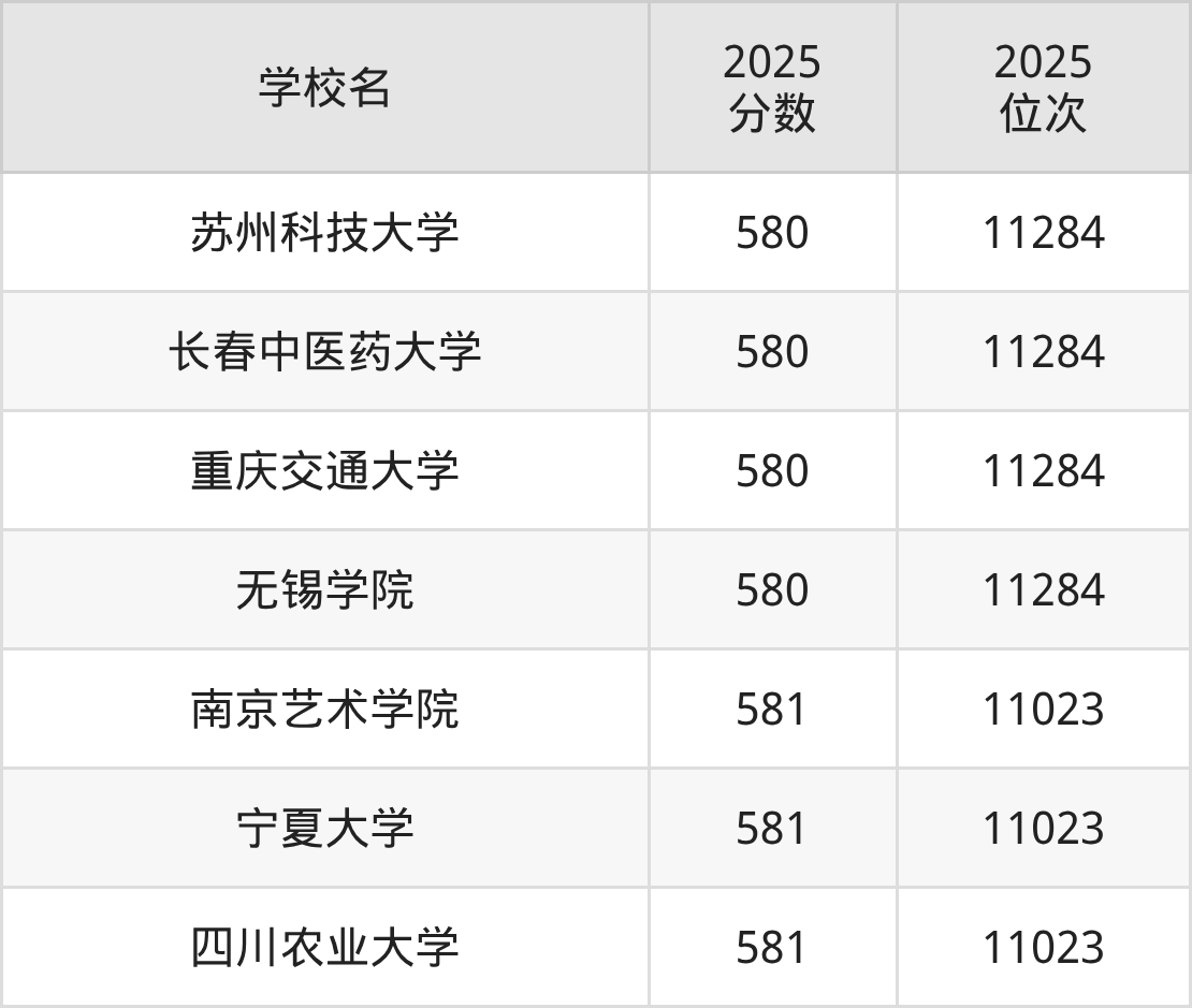 | 学校名 | 2025 分数 | 2025 位次 |