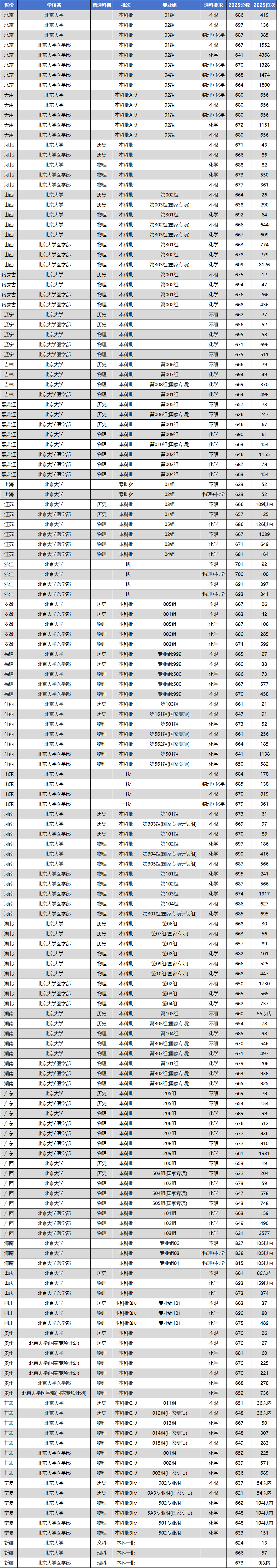 看完清华大学,我们再来看看北京大学在各省的最低分。