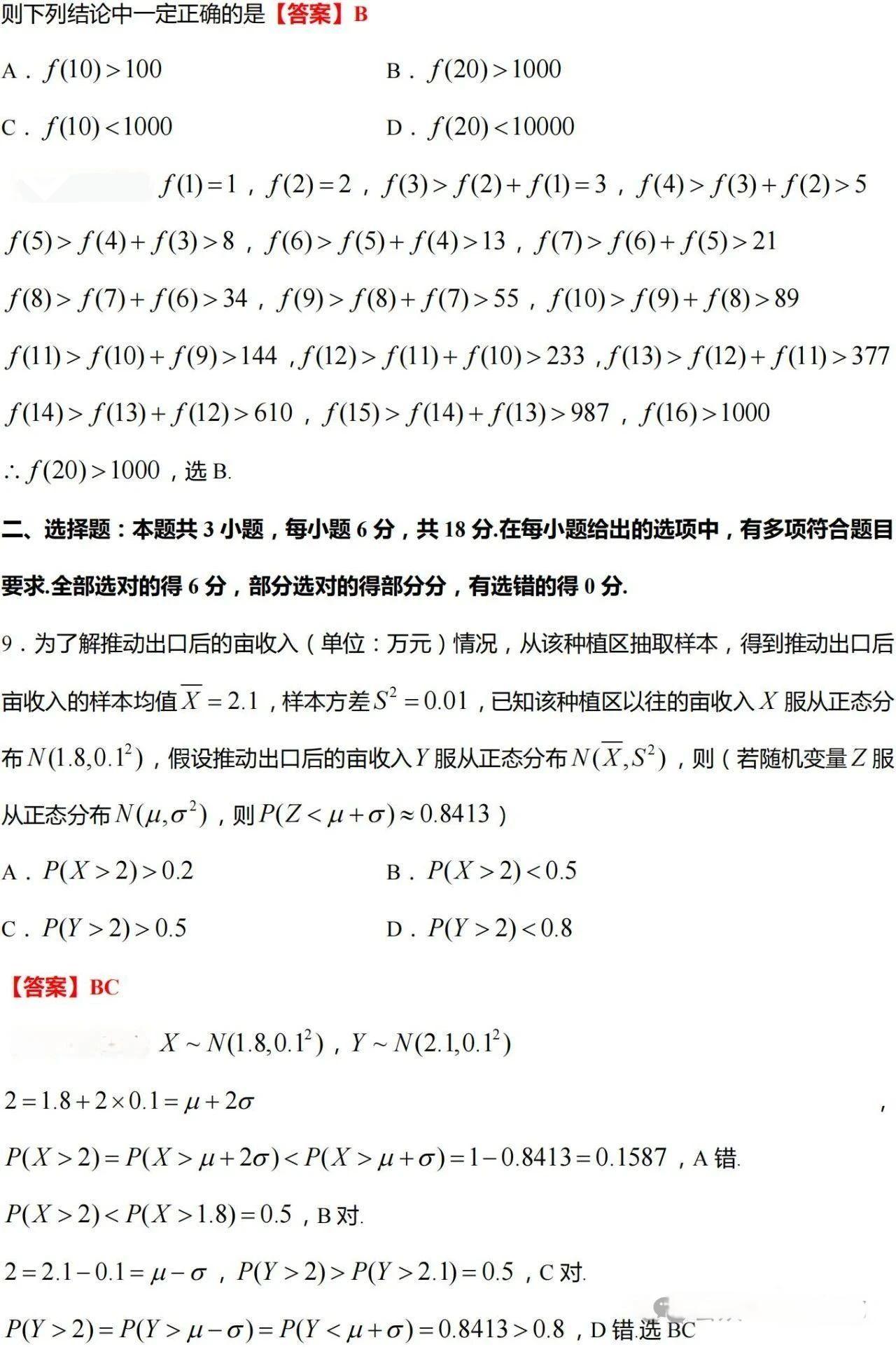 1.选择题:主要考查基础知识和数学常识,题型包括数列与数论、函数与方程、几何与代数等。