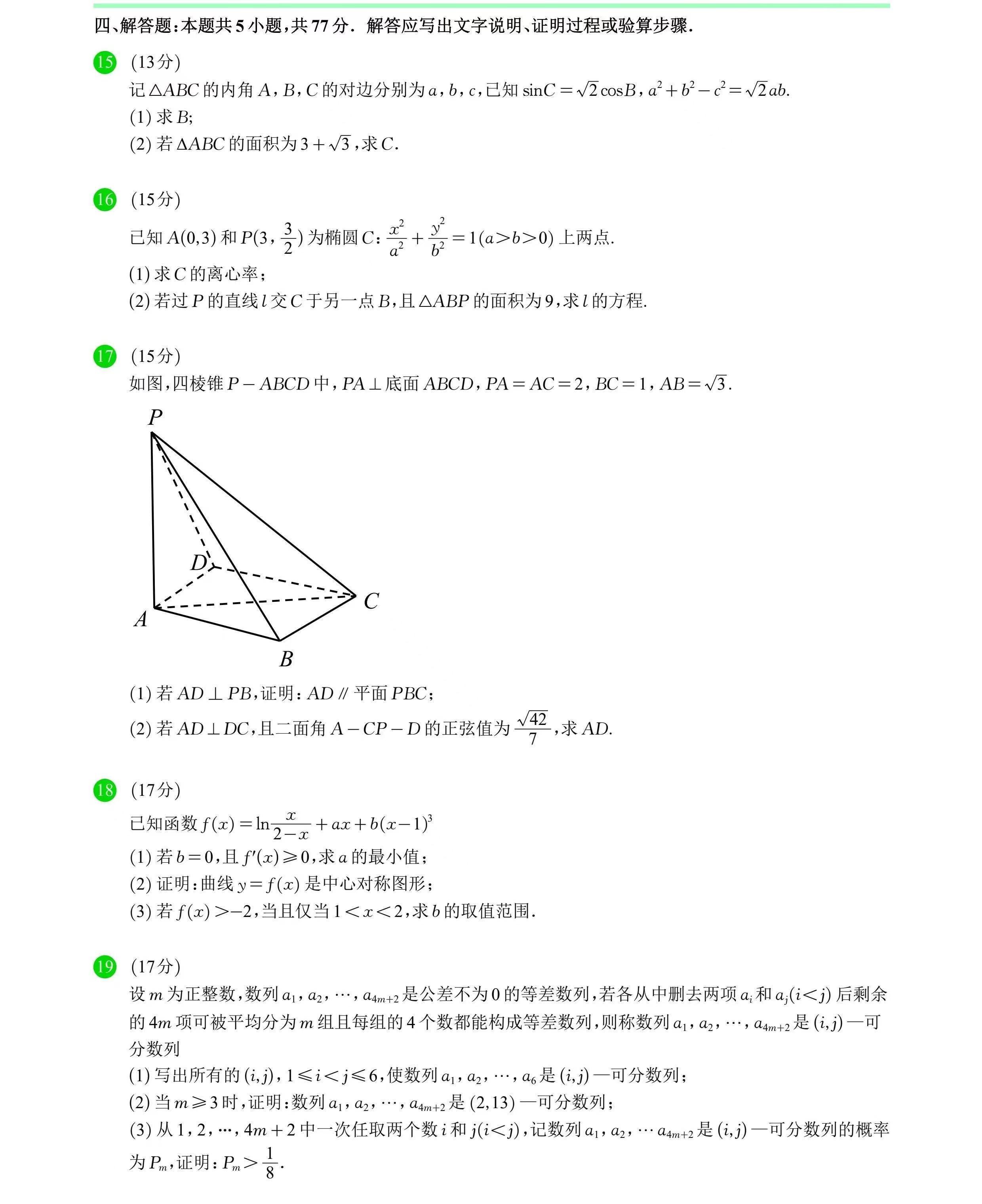 二、2024年新高考一卷数学答案