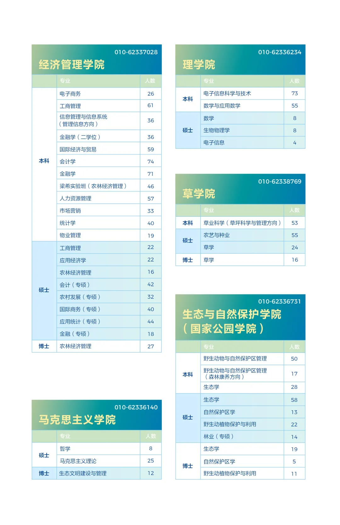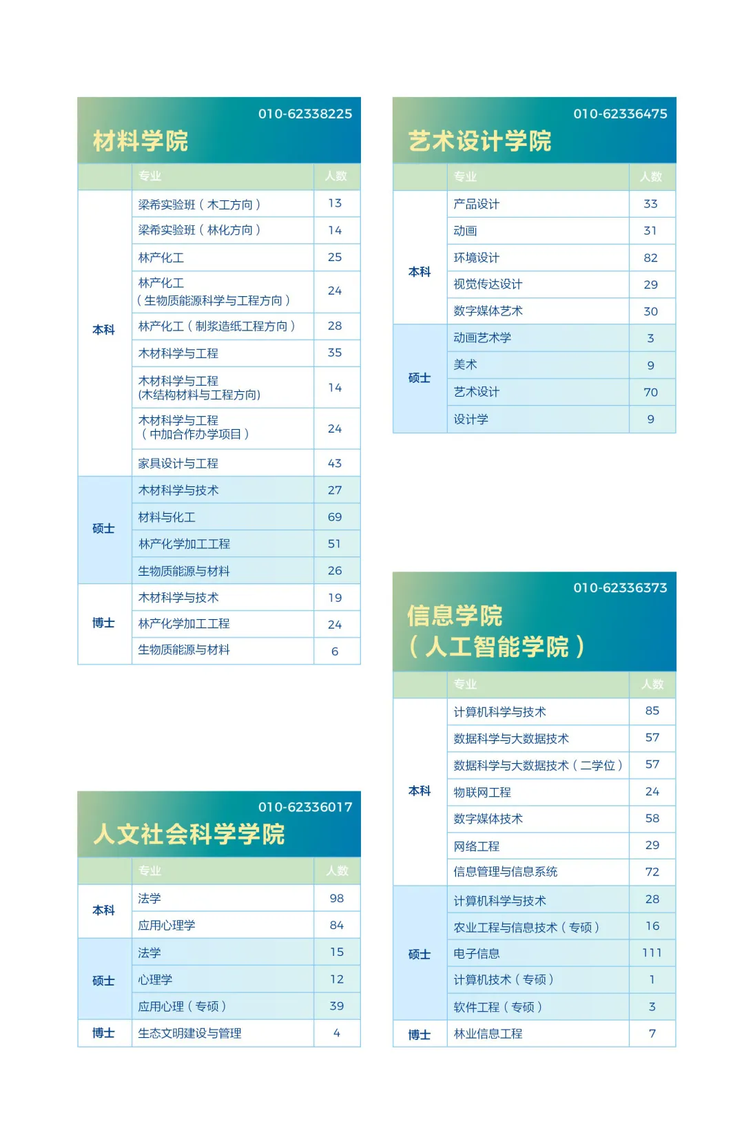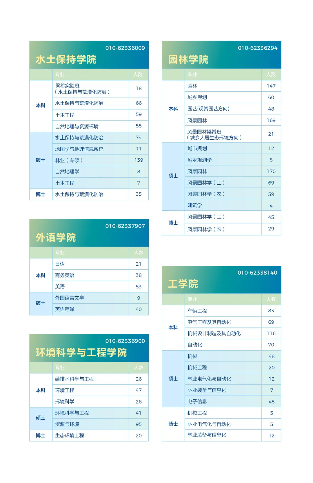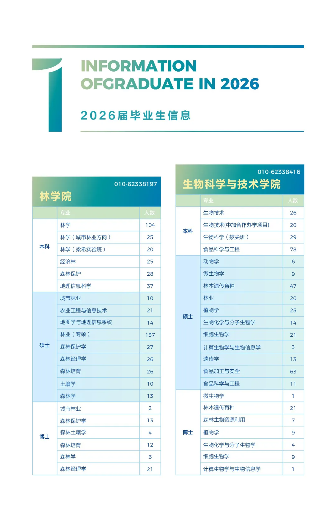 下方展示的是北京林业大学的各个二级学院的毕业生人数、及本科各专业的毕业生人数汇总!