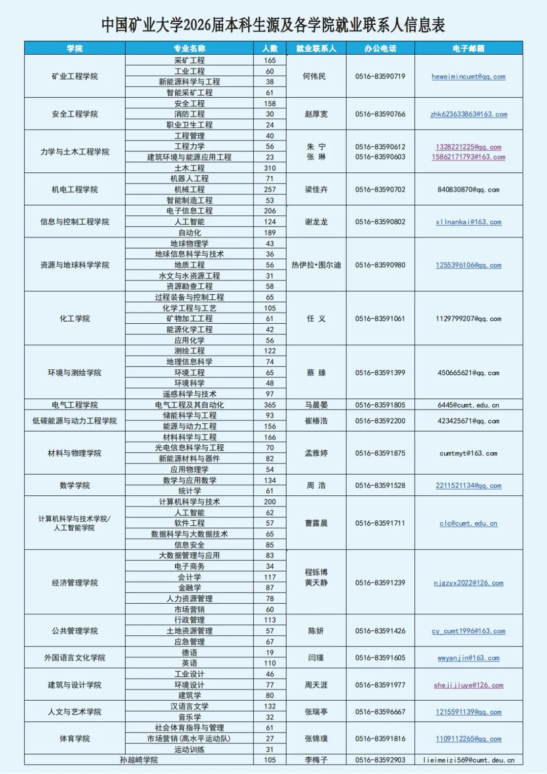 下方展示的是中国矿业大学的各个二级学院的毕业生人数、及本科各专业的毕业生人数汇总!