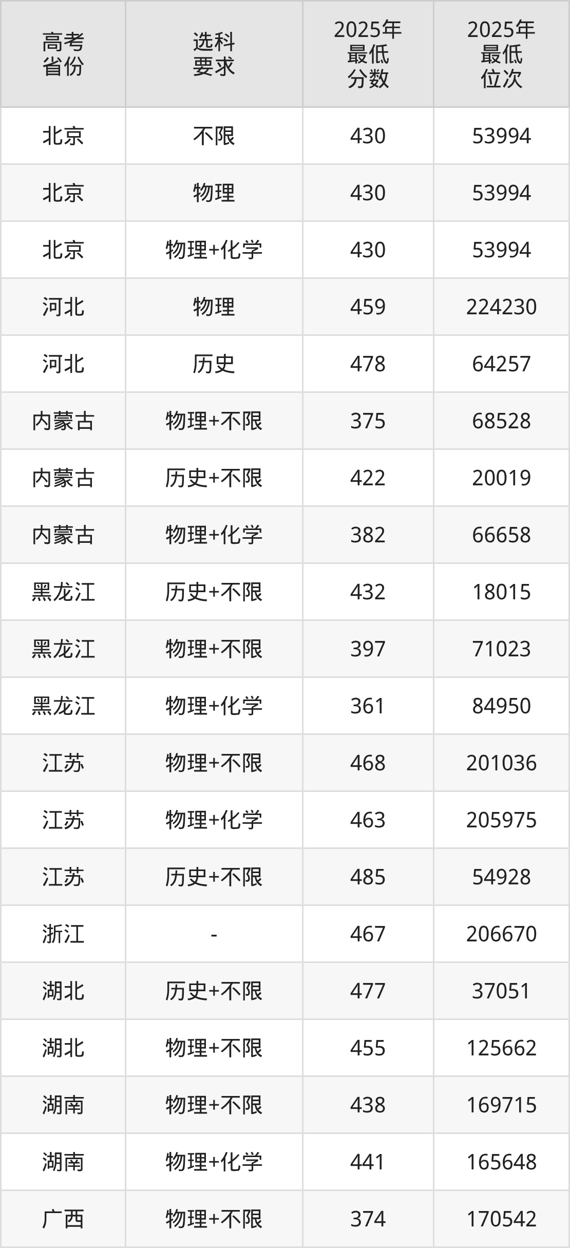 在2025年北京高考招生时,公办本科收分最低的是北京农学院(06)(中外合办),最低分是430分、位次是53994位。再看北京金融科技学院,2025年在北京的最低录取分数线是430分,最低位次是53994位。
