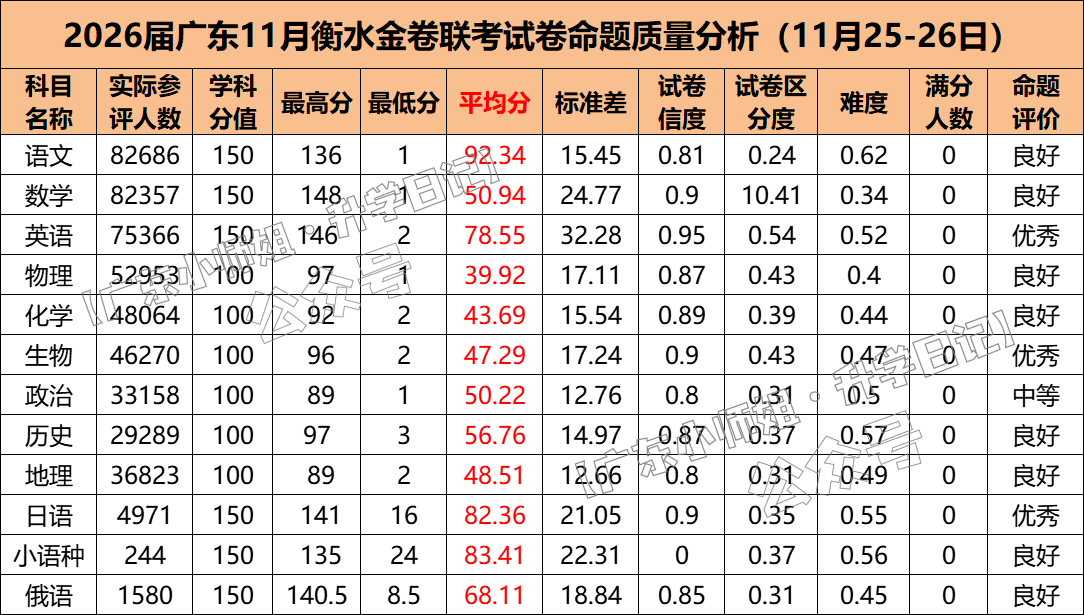本次联考于2025年11月25日至26日举行,是2026届广东高三考生一次重要的阶段性检验。