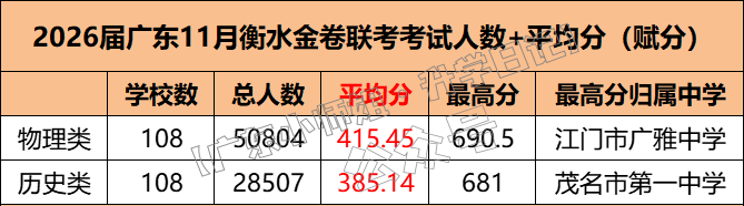 广东衡水金卷联考作为高三关键节点的大型模拟考,覆盖物理类、历史类共216所学校,参考人数近8万人。其中,物理类特控线为495分、本科线392分,历史类特控线为505分、本科线395分。