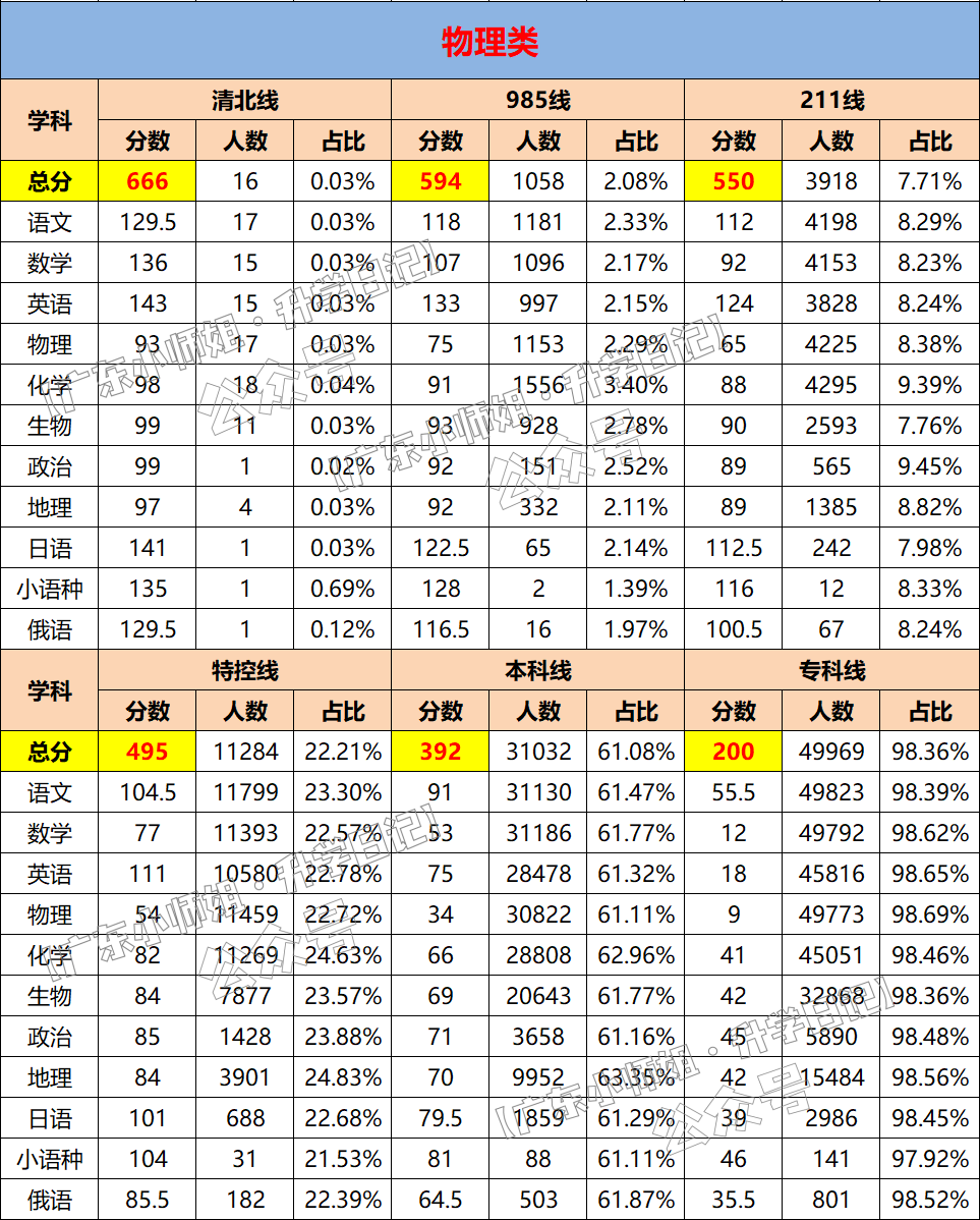 联考分数线是衡量考生在全省范围内相对位置的重要标尺。本次划线主要分为两个大类:历史类和物理类,每一类又细分为清北线、985线、211线、特控线、本科线及专科线,为不同目标的考生提供了清晰的参照。