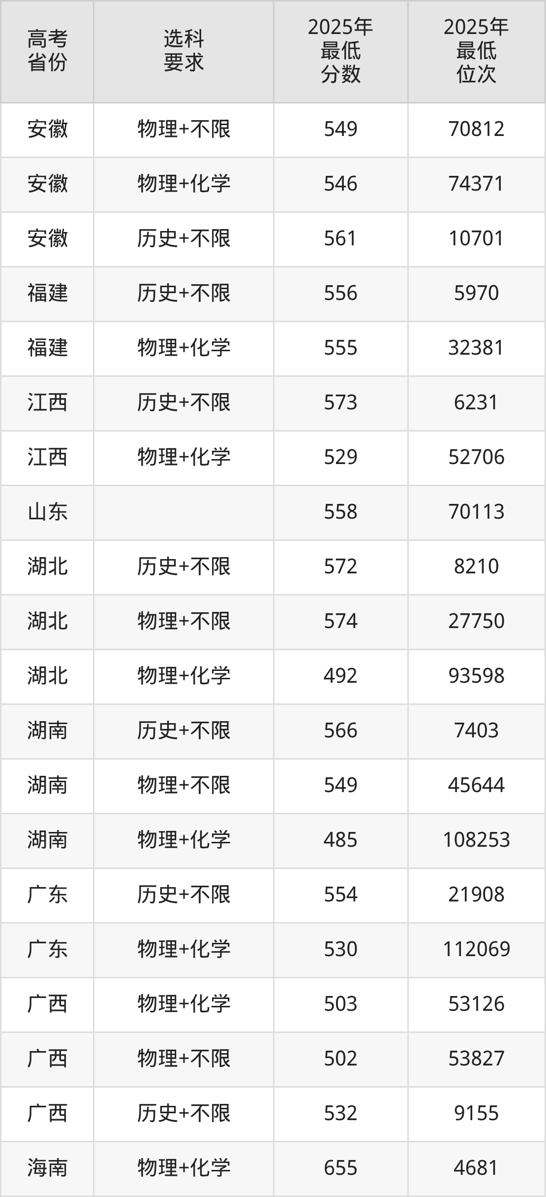(1)中医学,最低分是652,录取位次是2337,学费是5800元一年。