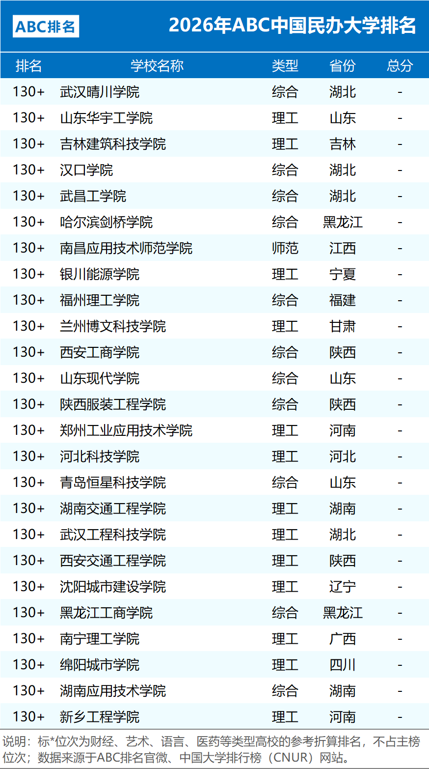 较上一年度新增31所高校,体系更完整、分类更清晰。排名由ABC咨询机构编制,注重指标多元融合与数据真实公开,在教育界与社会各界具有广泛影响力,被众多权威媒体转载报道。