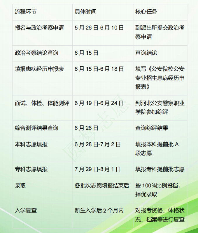 河北省的报考流程可以概括为“提前政审-高考-测评-填志愿”,启动时间早,节奏紧凑。以下是关键步骤(基于2025年时间)。