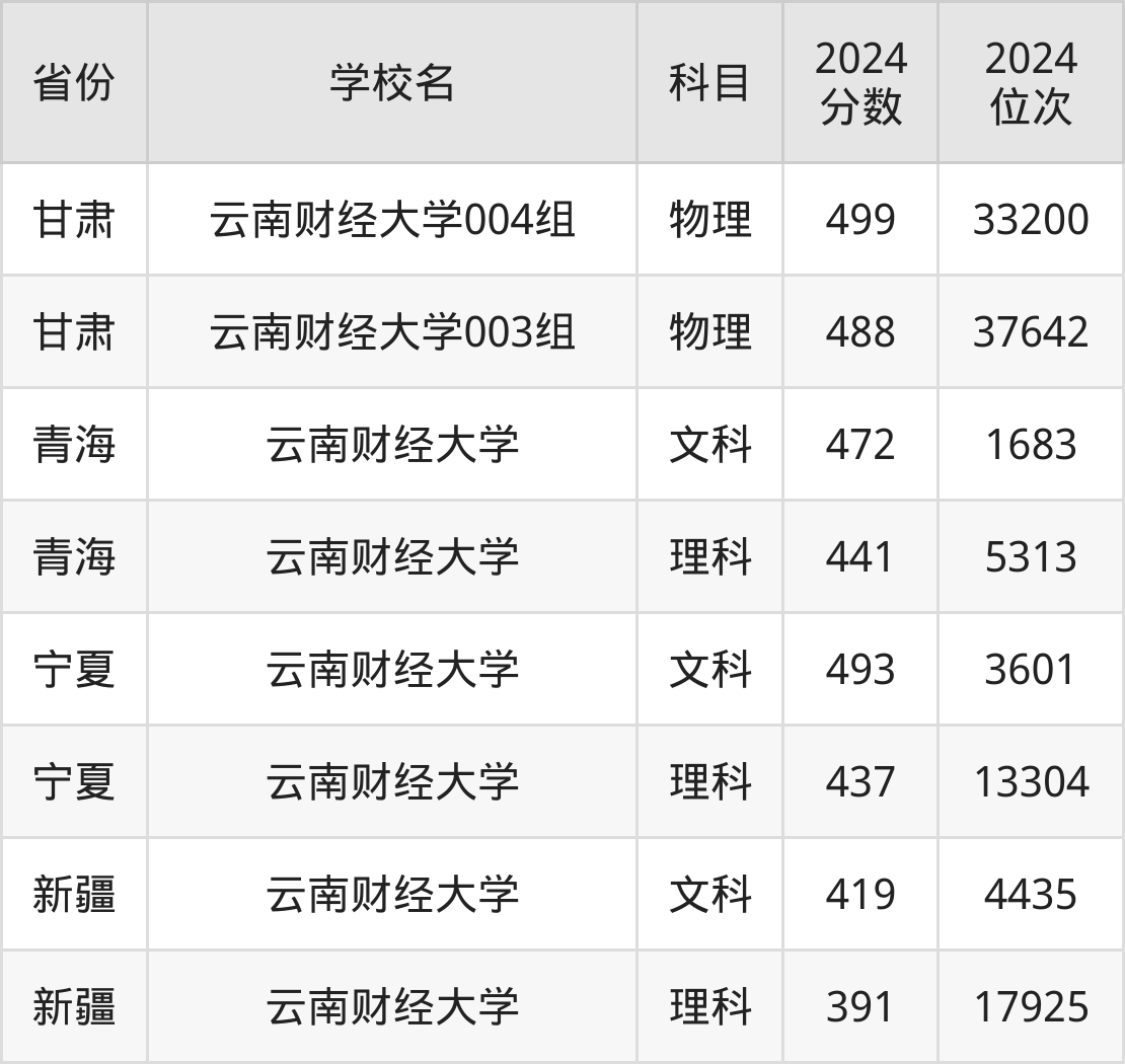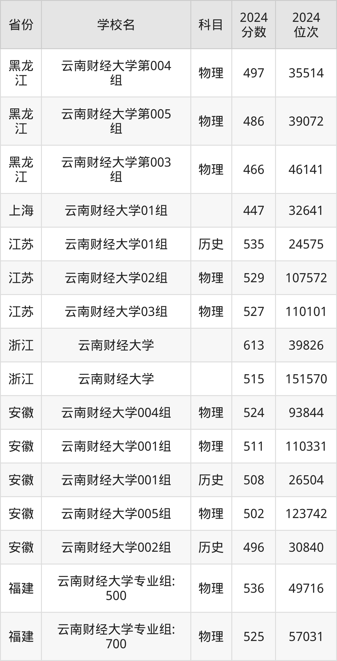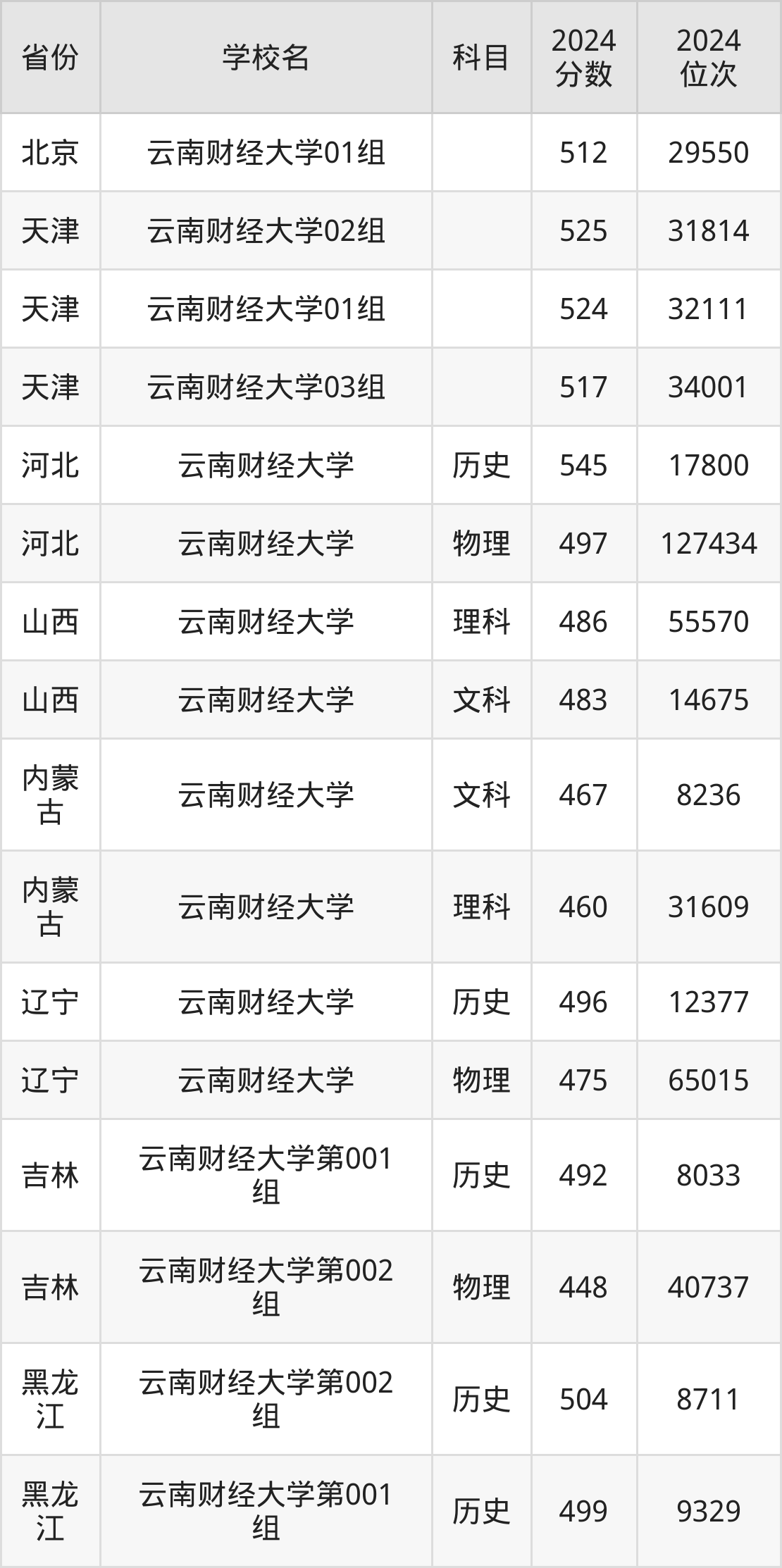以2024年数据作为参考依据,整理云南省内、省外考云南财经大学要多少分。
