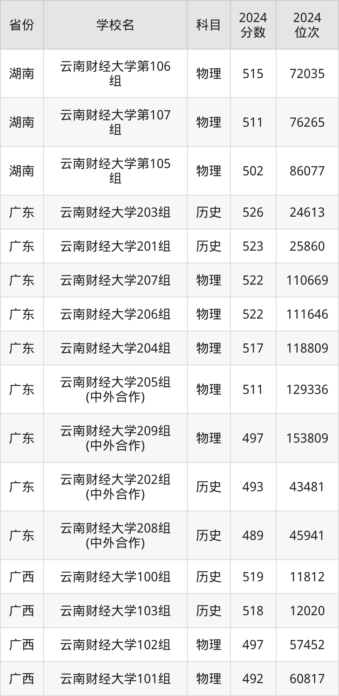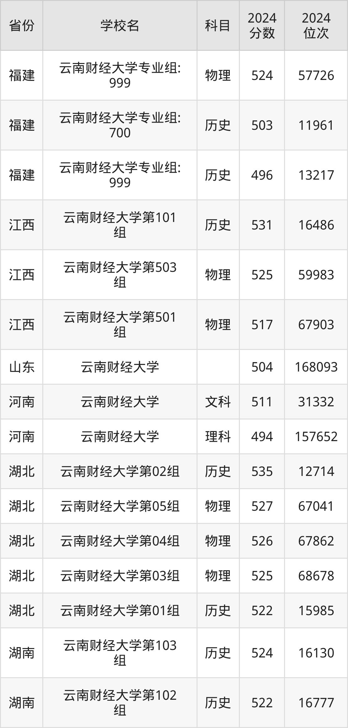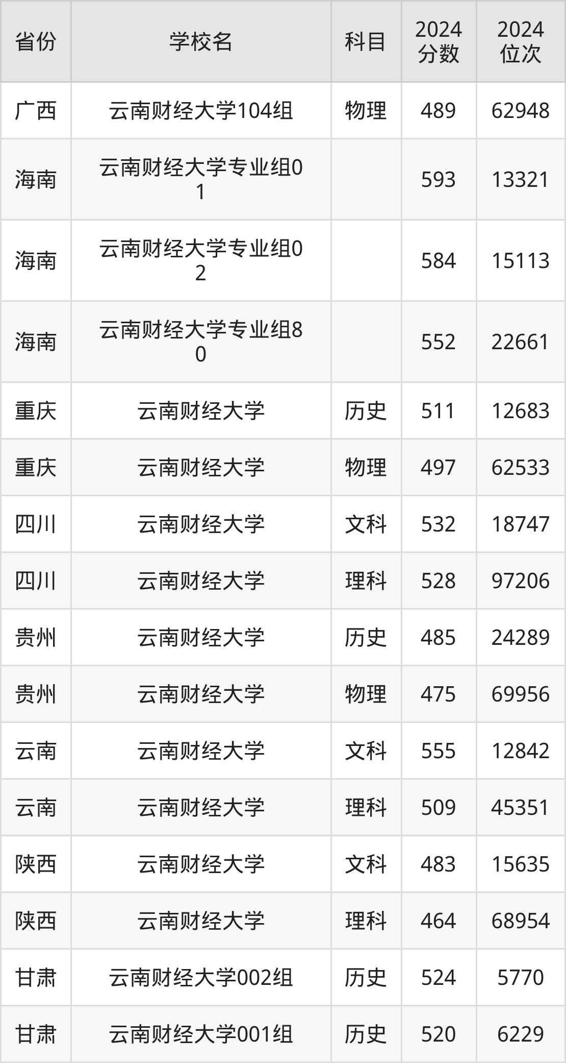 以2024年数据作为参考依据,整理云南省内、省外考云南财经大学要多少分。