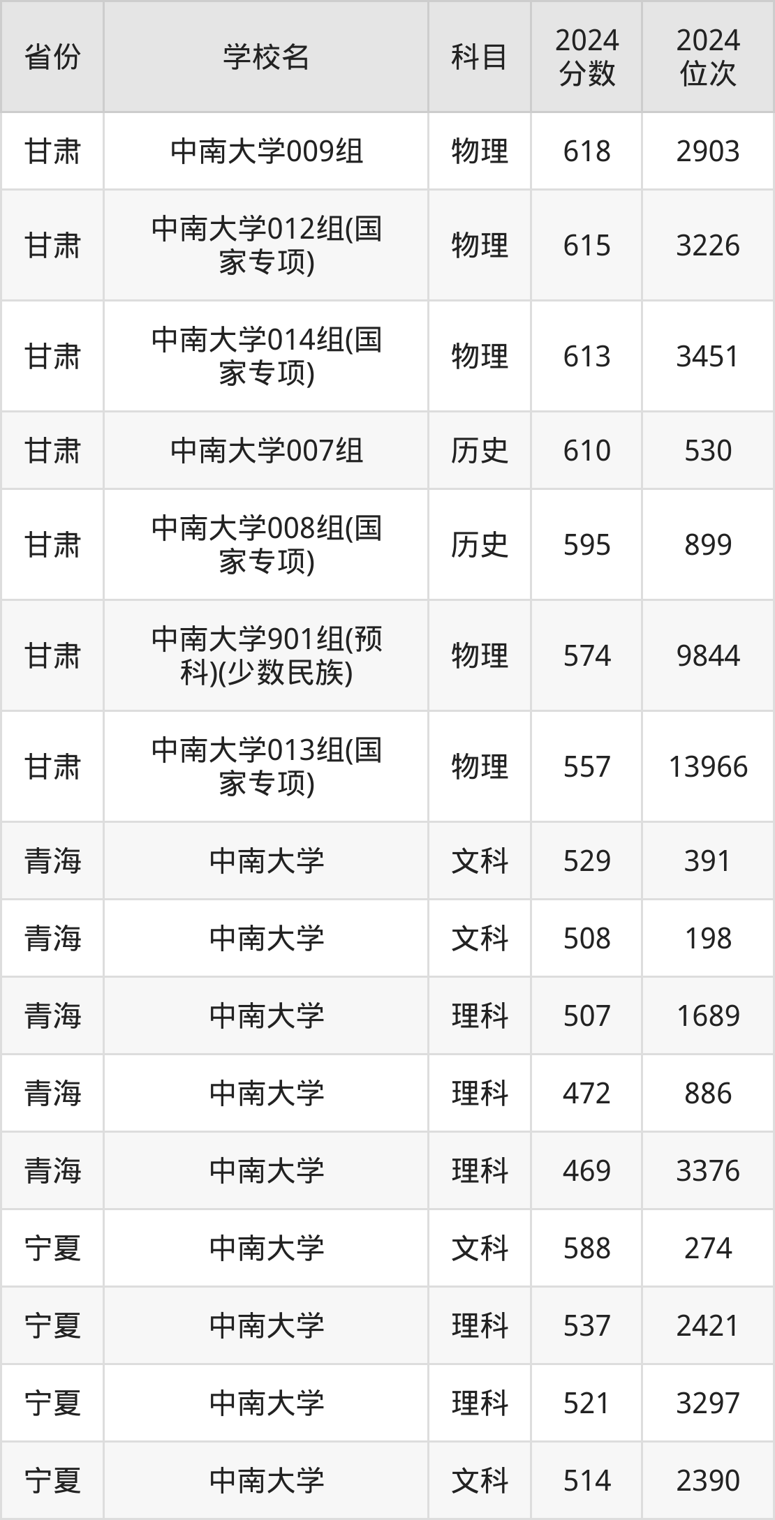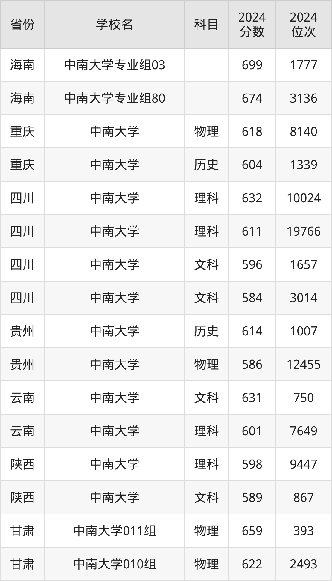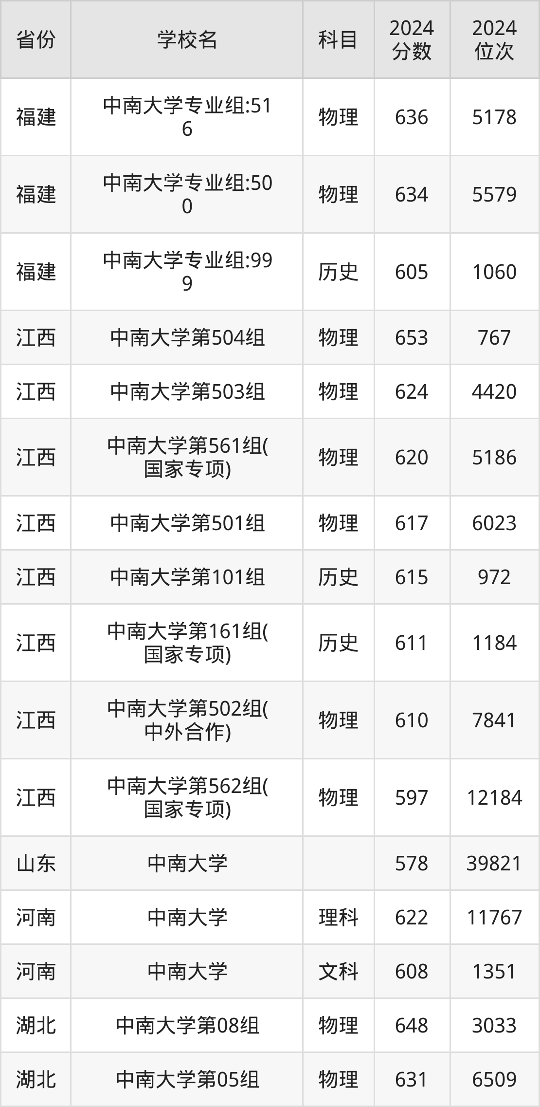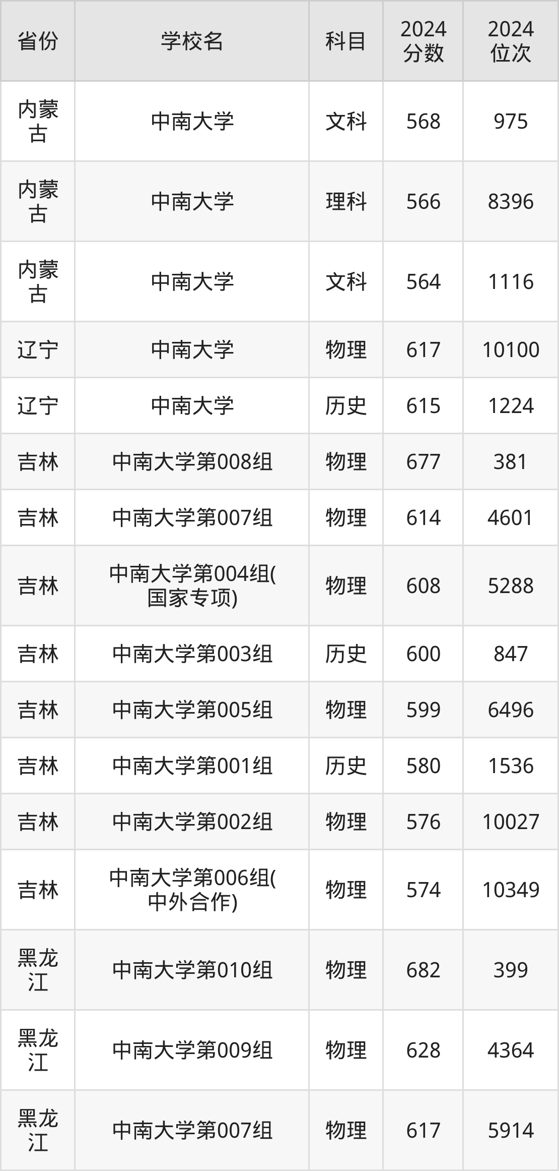 以2024年数据作为参考依据,整理湖南省内、省外考中南大学要多少分。