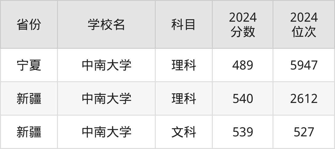 由于全国数据较多,因此本文仅展示中南大学省内近三年录取分数线汇总。
