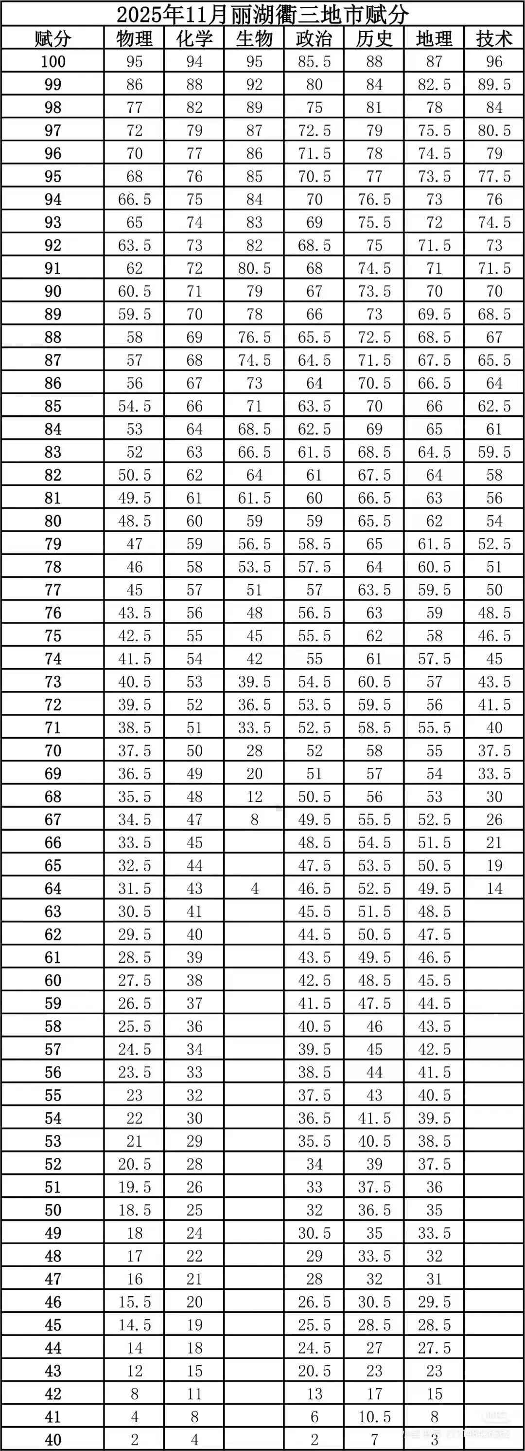 湖州、丽水、衢州三地市联合一模的划线数据已公布,赋分表也同步发布,为考生提供跨区域对比参考。
