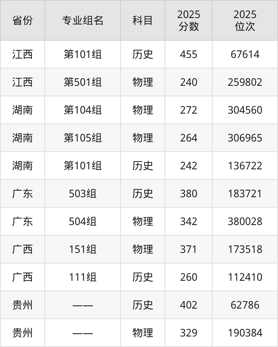 2025年永州师范高等专科学校在湖南省外录取分数线范围是240分到455分,录取最低的是江西(物理类)。多数地区都需要340分以上才能考永州师范高等专科学校,340分以下能考永州师范高等专科学校的有江西、广西、贵州等地。