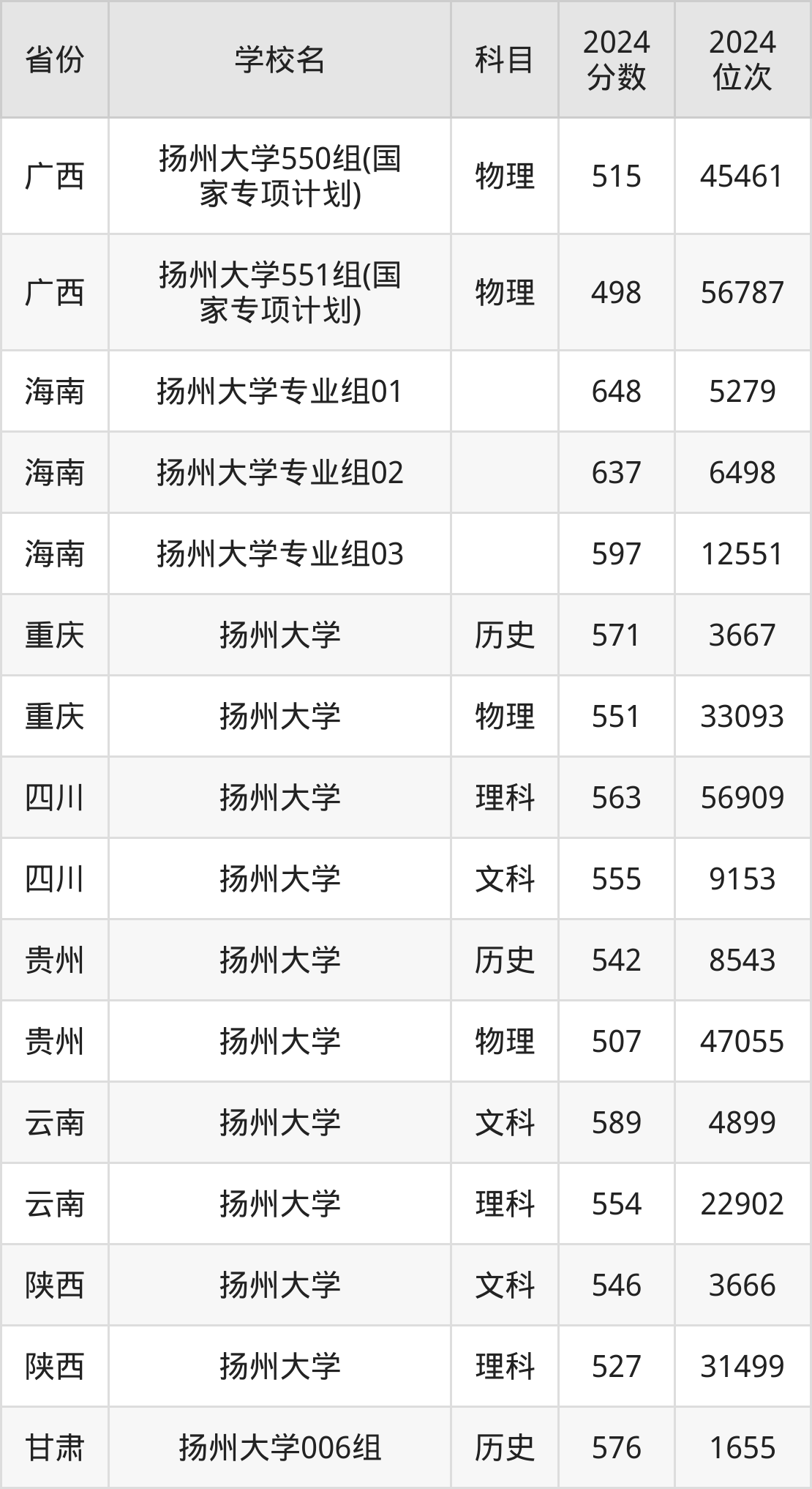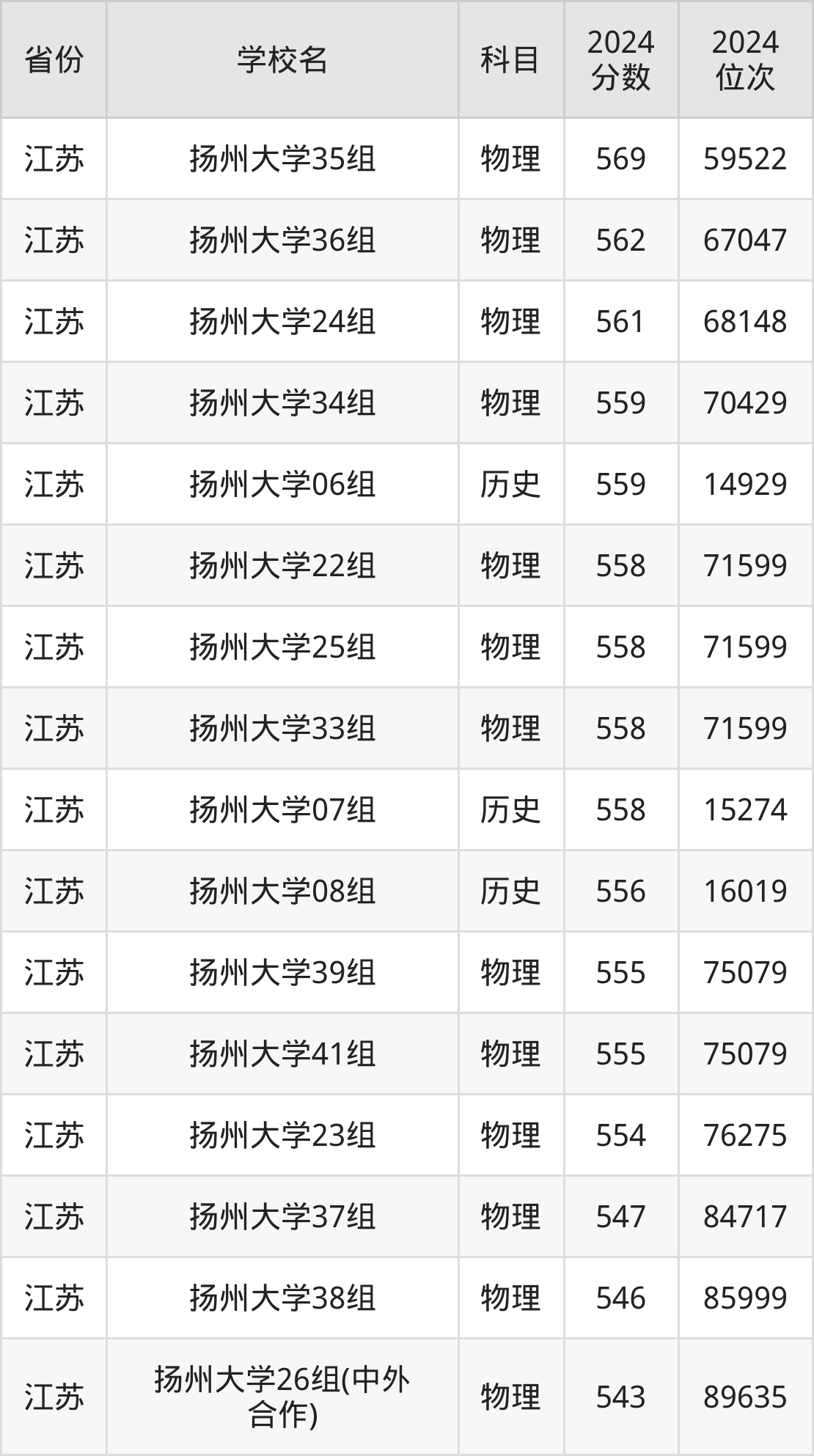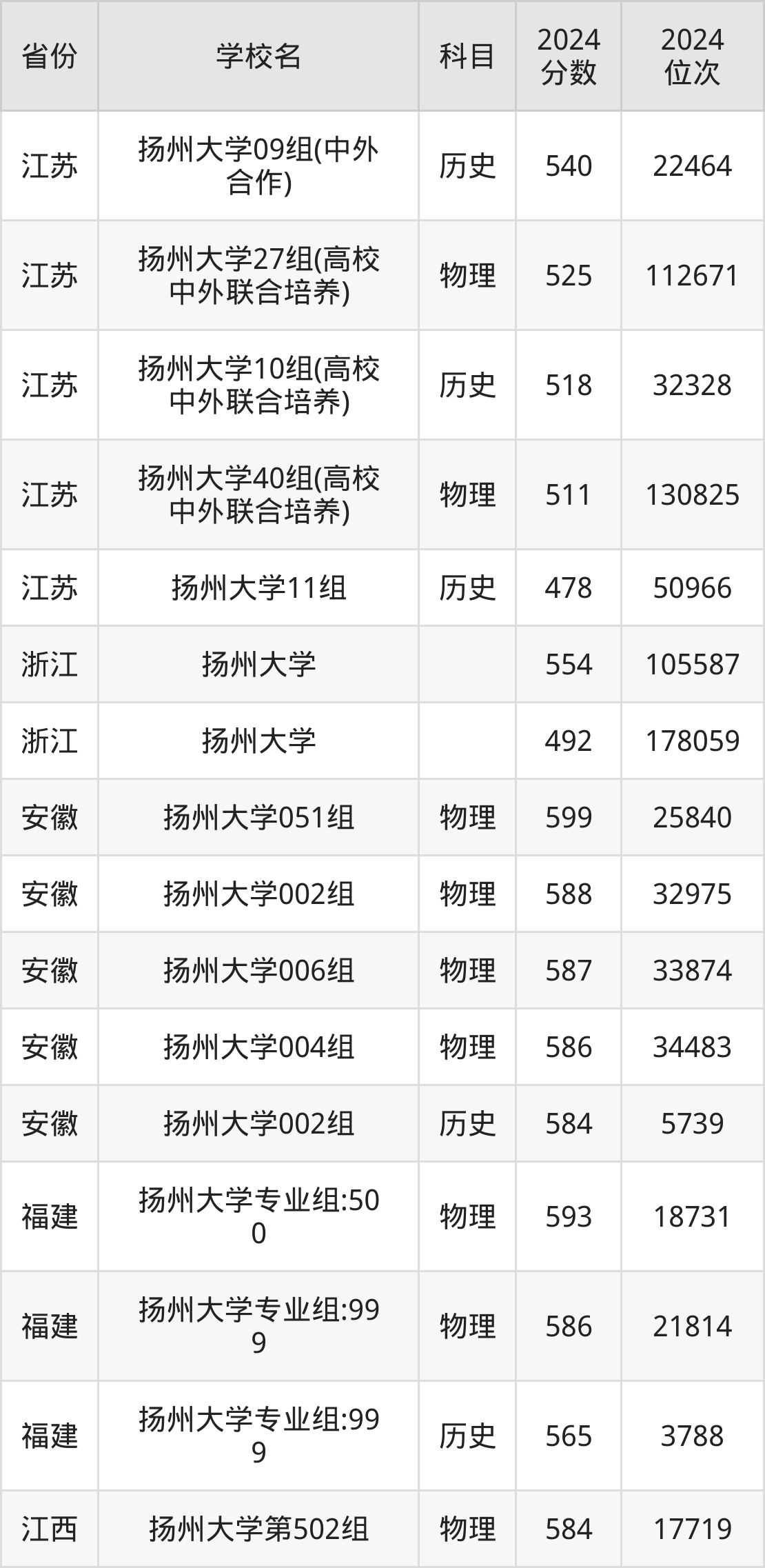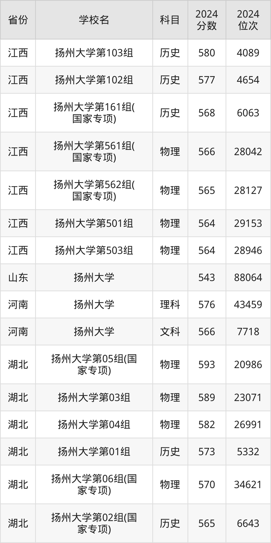 下面是扬州大学2024年录取分数线一览表: