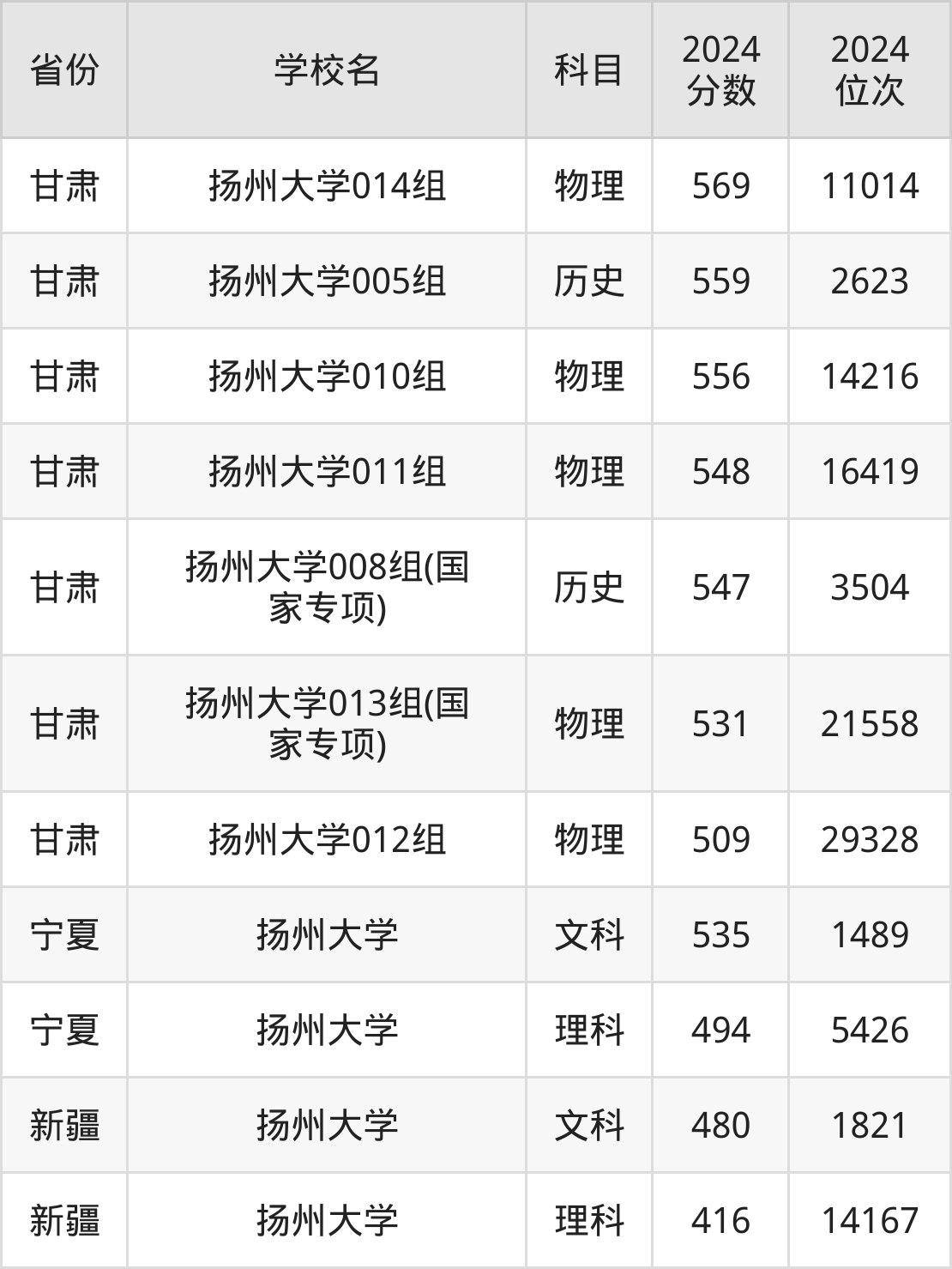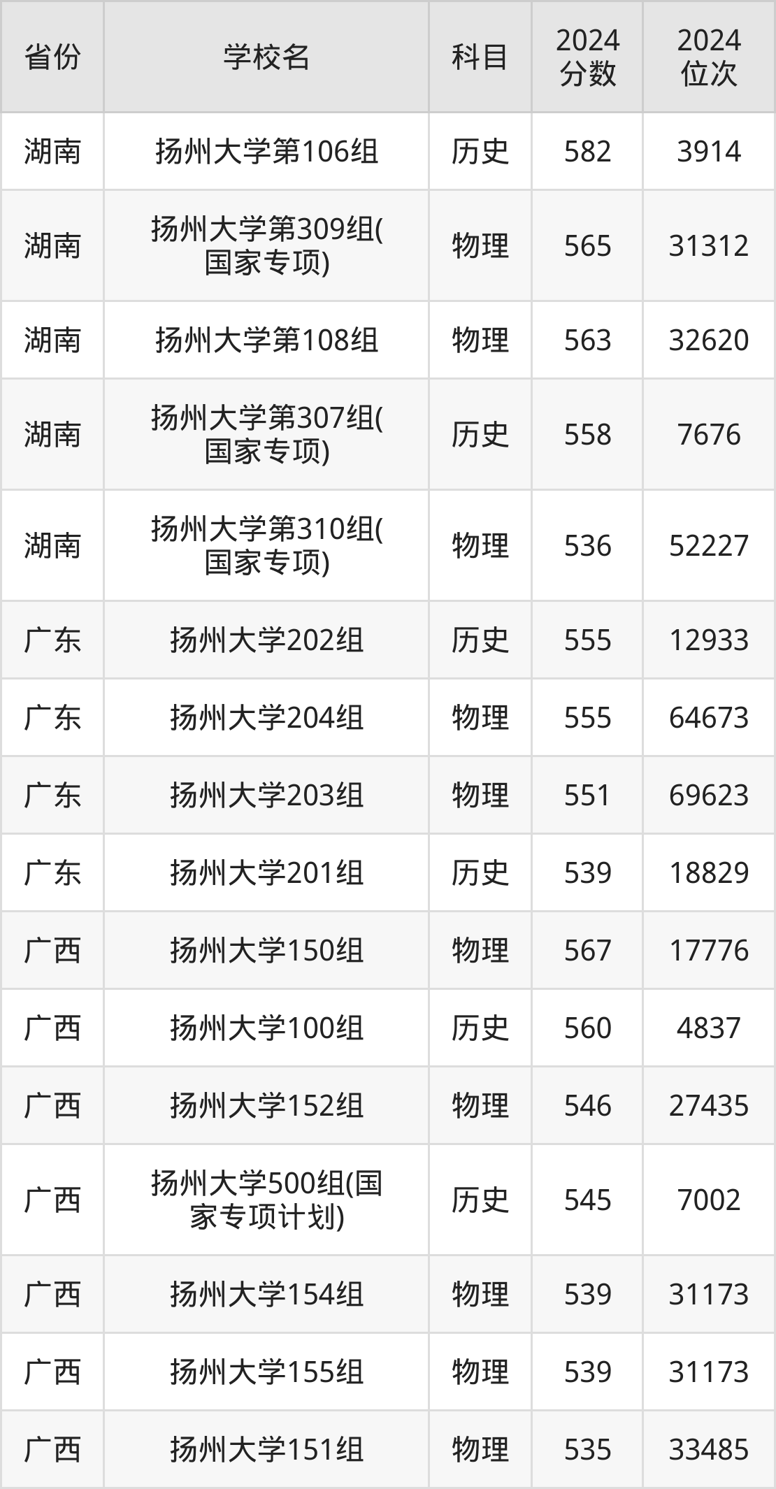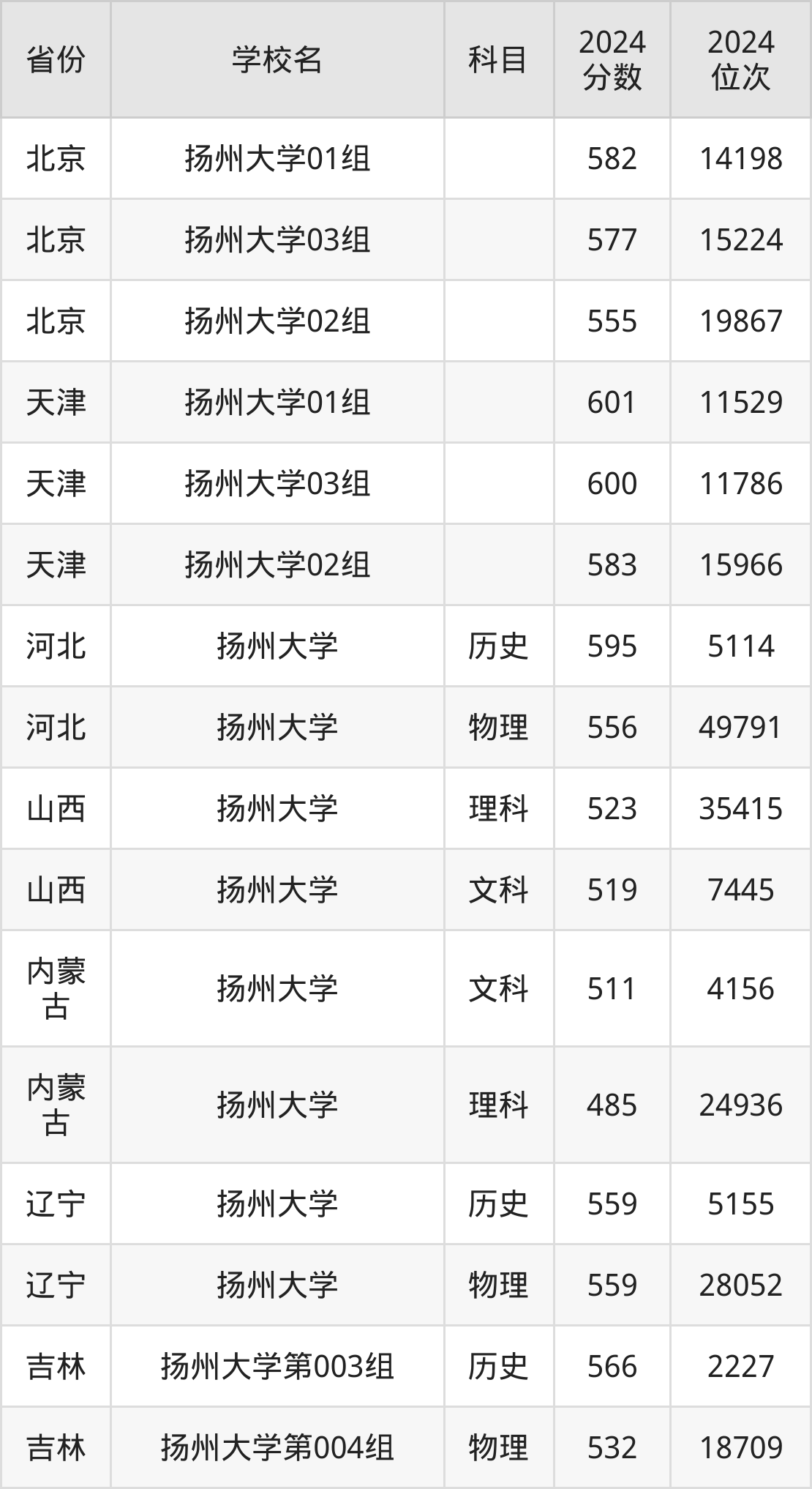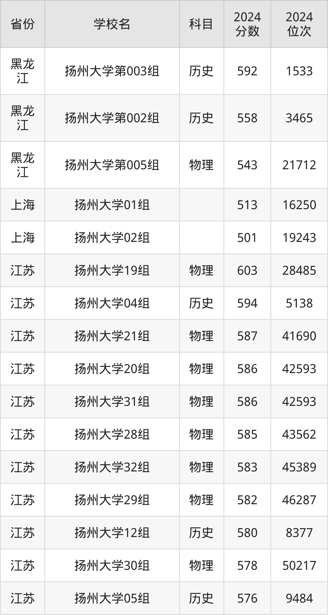 下面是扬州大学2024年录取分数线一览表: