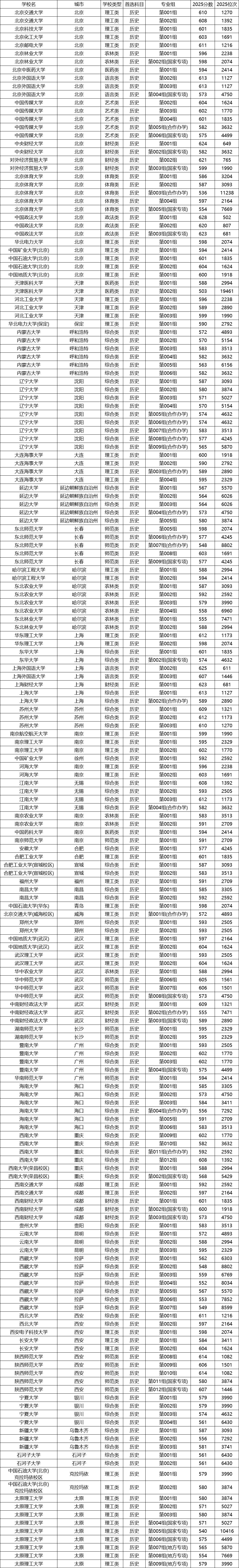 这一区间覆盖了大多数综合类和师范类211,如北京科技大学(601分)、南京师范大学(591分)、郑州大学(593分)等。位次在2000至5000名之间,是历史类考生的主力竞争区间。