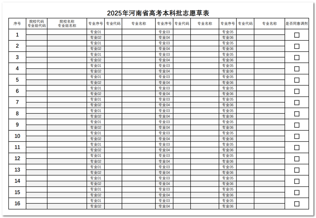2025年河南省高考本科批志愿草表如下: