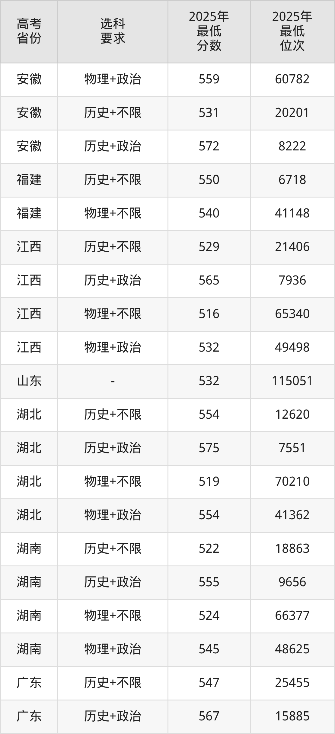 (2)法学,最低分是562,录取位次是5334,学费是5500元一年。