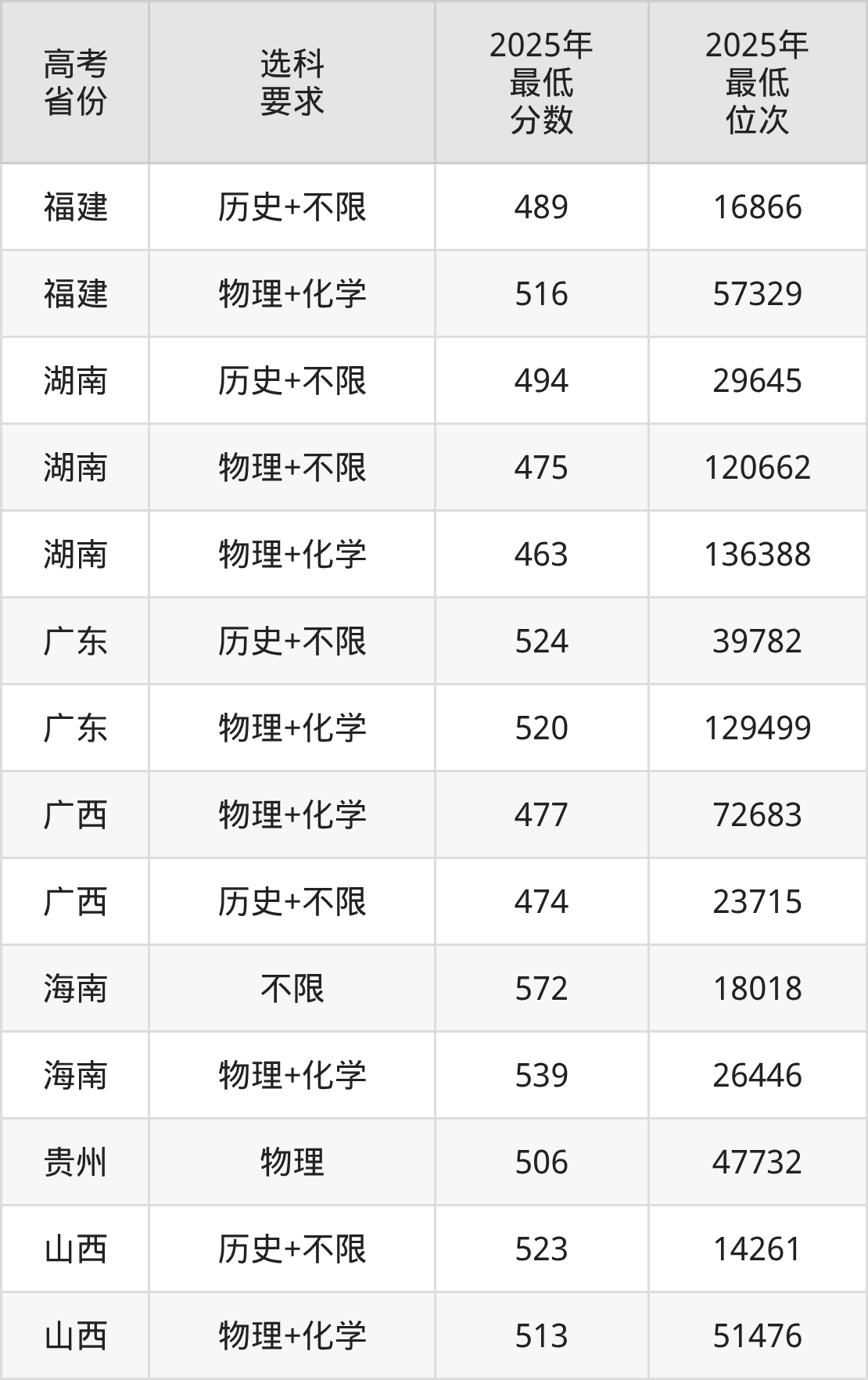 在2025年湖南高考物理类招生时,211收分最低的是海南大学第218组(中外合作办学或国际项目),最低分是462分、位次是137709位。再看长沙工业学院,2025年在湖南物理类的最低录取分数线是463分,最低位次是136388位。