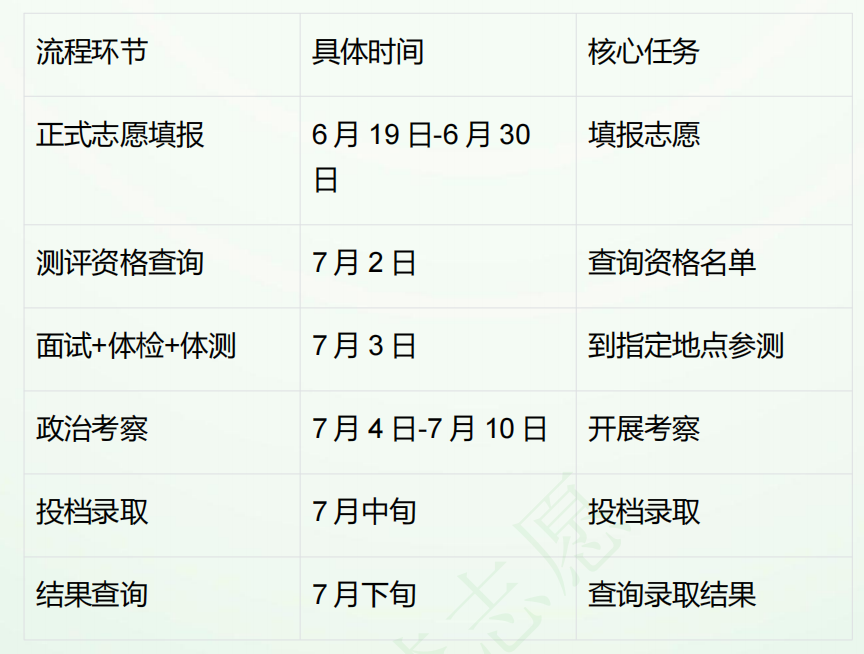 报考这些院校均需参加面试、体检和体能测评,并通过政治考察,在普通类本科提前批填报志愿。