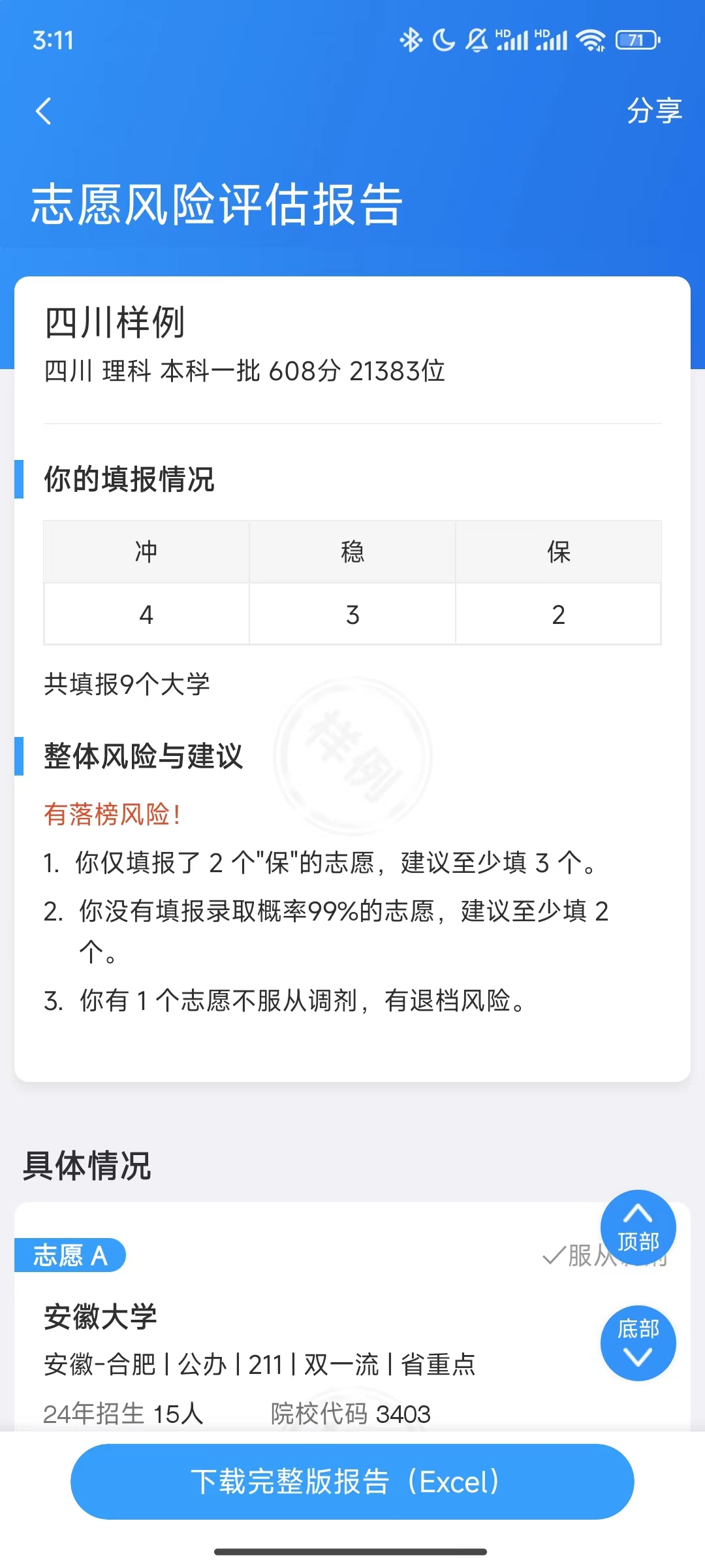 App还提供了模拟填报高考志愿的功能,让考生和家长在正式填报前就能进行实战演练,避免填报时的慌乱和失误。同时,还能获取志愿风险评估报告,提前发现潜在的填报陷阱。