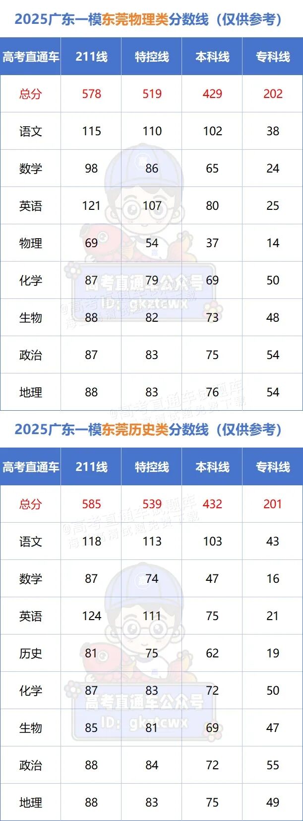 东莞划线较为细致,包含211线、特控线、本科线、专科线: