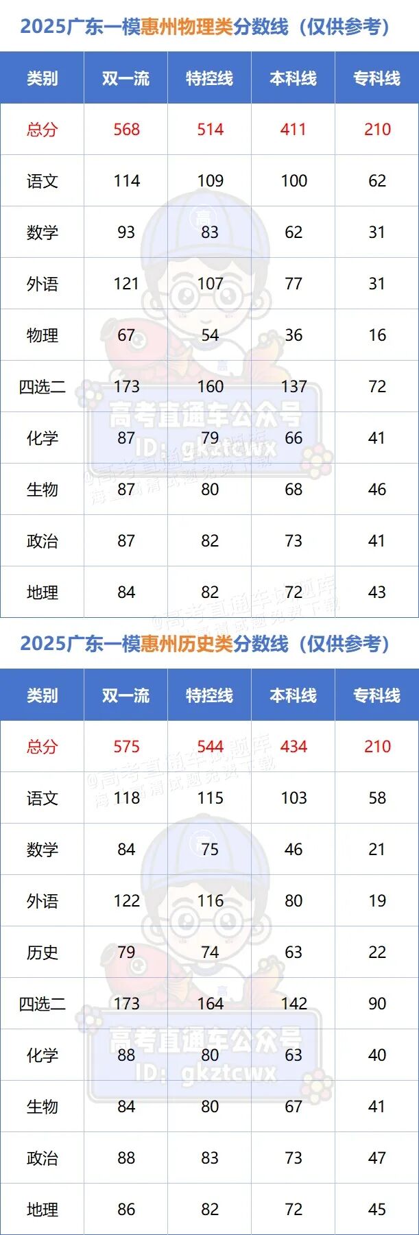 惠州公布了各档次详细分数线: