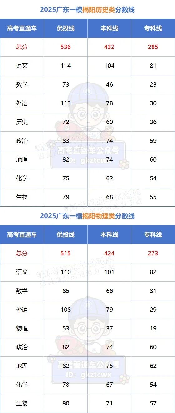 揭阳划有优投线(相当于特控)、本科线、专科线,且单科齐全: