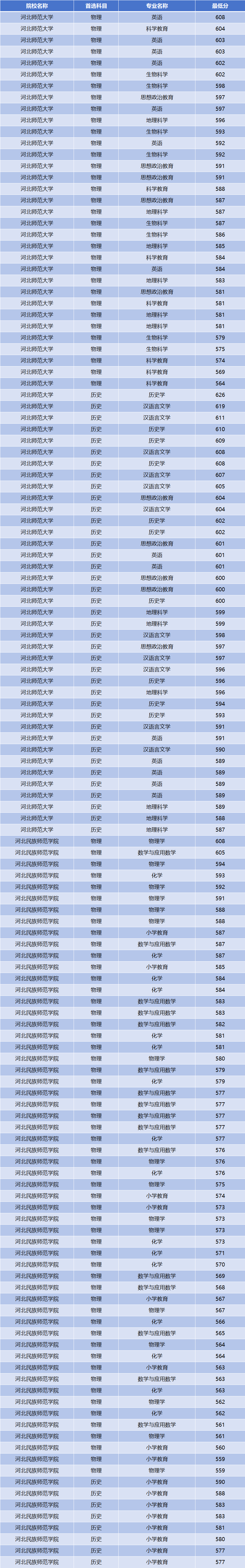 河北师范大学在河北历史类录取分数线最低为577分,录取专业为地理科学;在物理类录取分数线最低为564分,录取专业为科学教育。