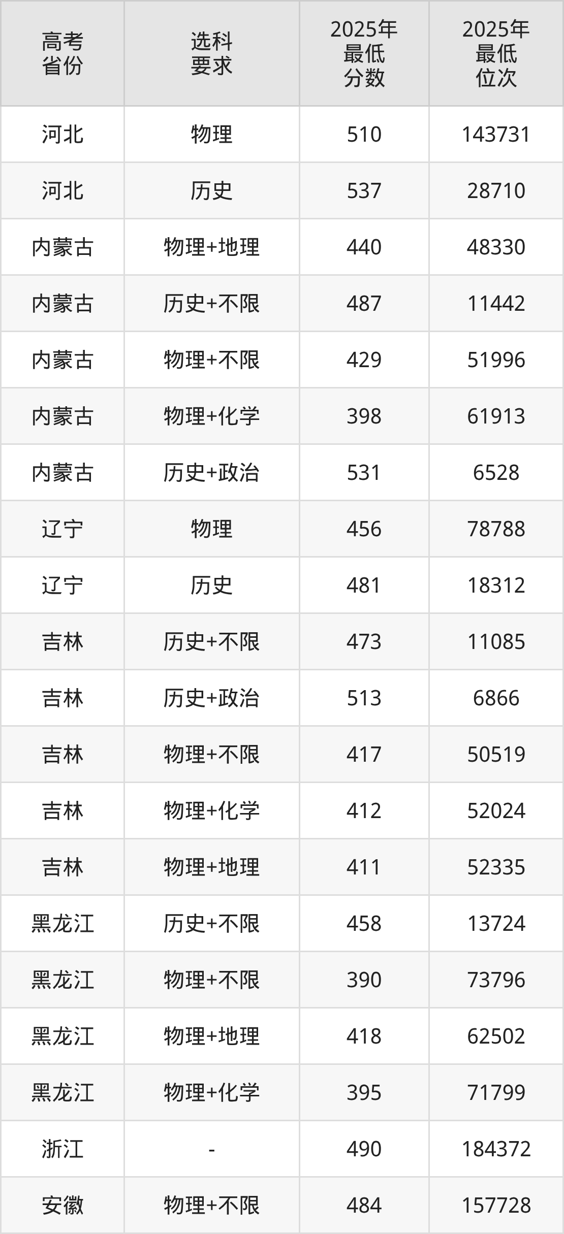 在2025年内蒙古高考物理类招生时,211收分最低的是东北林业大学第006组(中外合作),最低分是499分、位次是30054位。再看内蒙古科技大学包头师范学院,2025年在内蒙古物理类的最低录取分数线是398分,最低位次是61913位。
