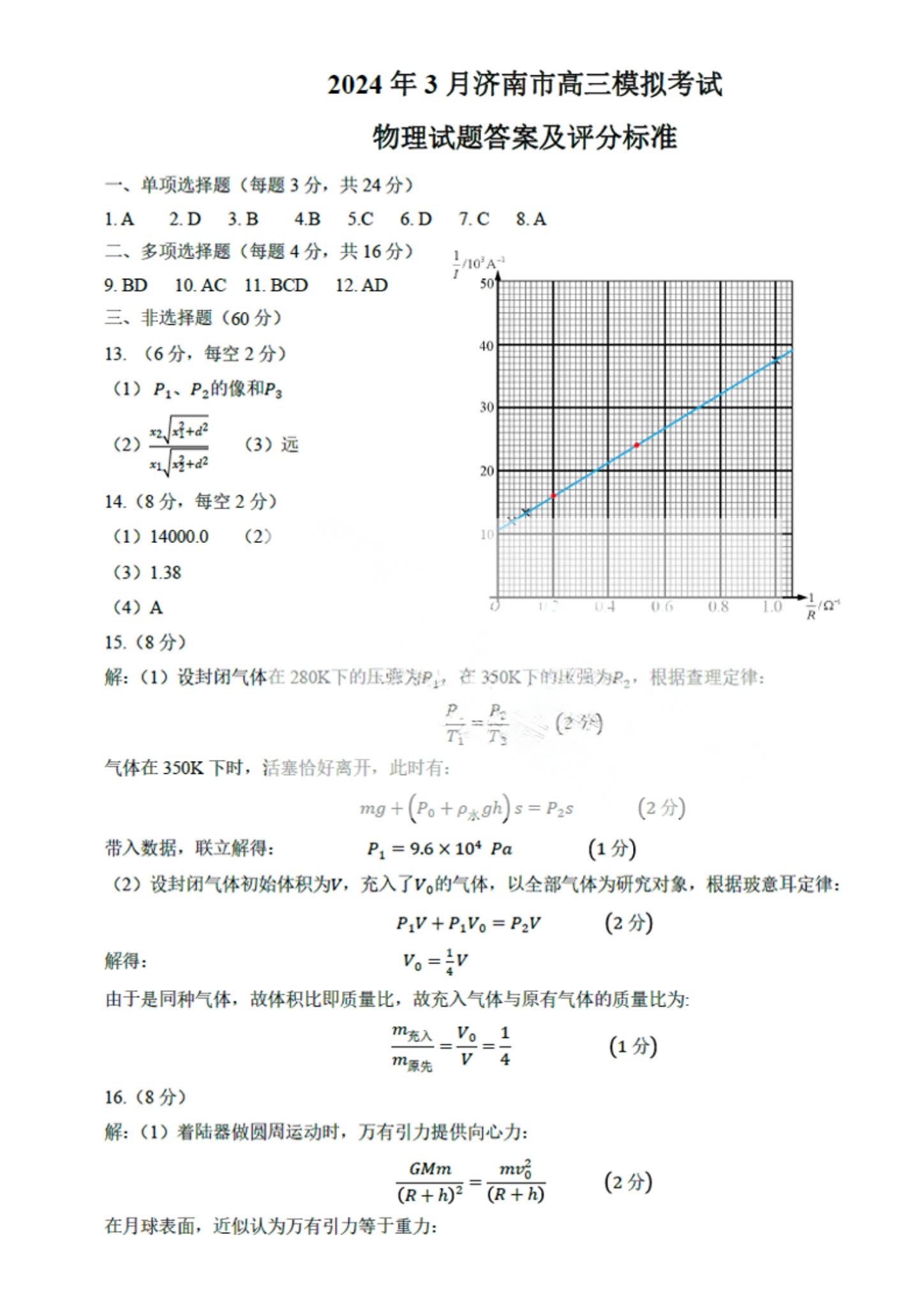 1.2024济南一模物理试卷及答案